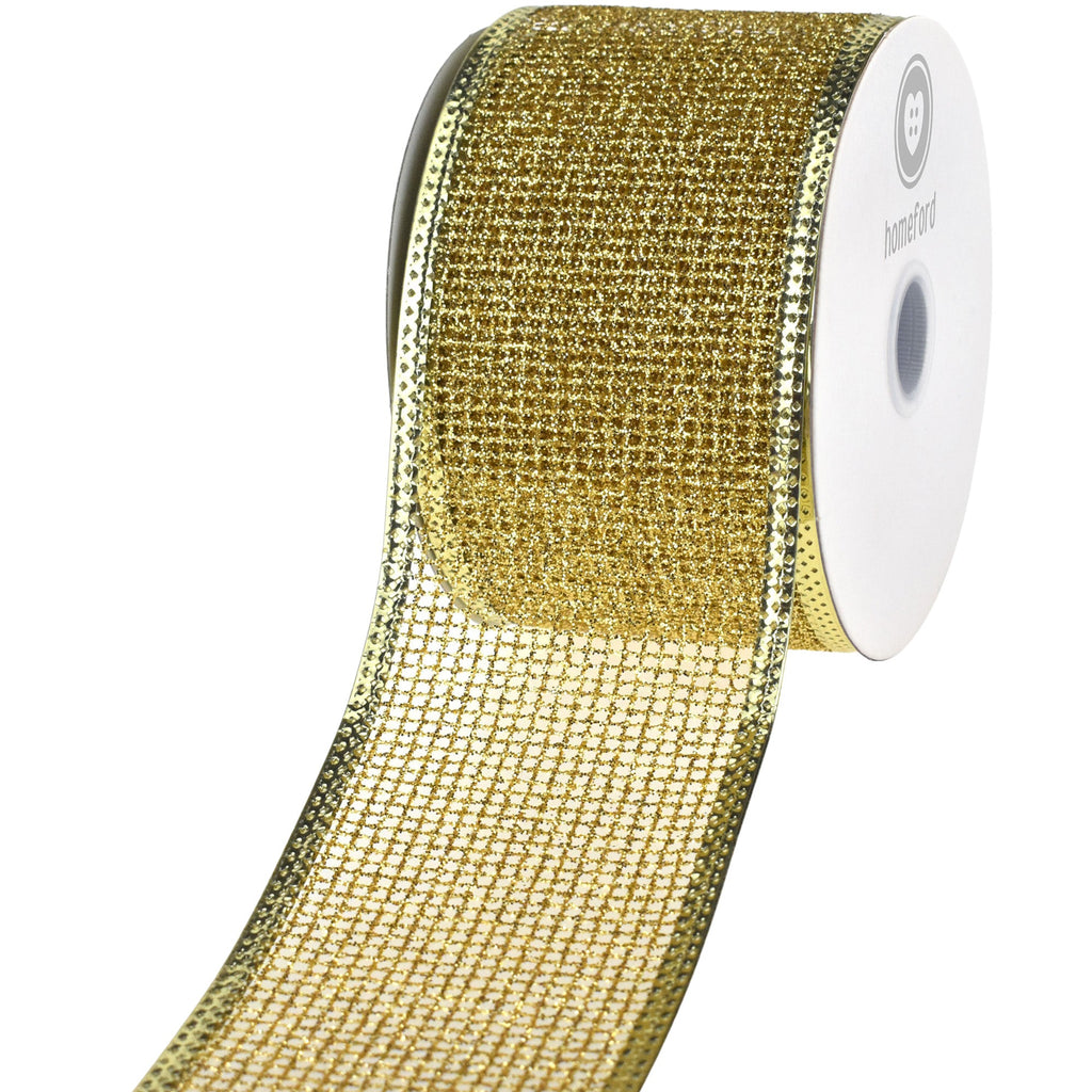 Christmas Glittered Net Metallic Edge Wired Ribbon, 2-1/2-inch, 10-yard