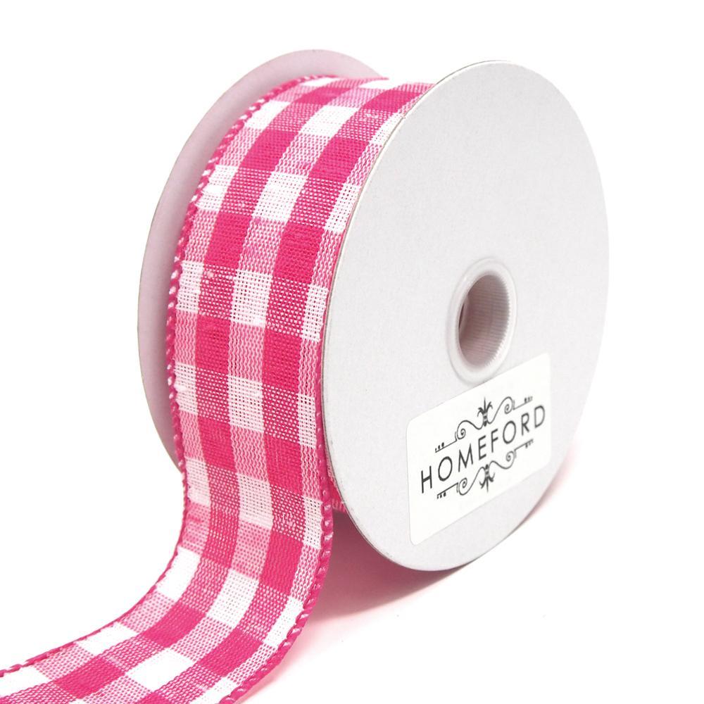 Colorful vibrant gingham checkered wired linen ribbon. The perfect ribbon this spring season for all your arts & craft projects, spring wreaths, scrapbook decorations and so much more. The possibilities are endless. Ribbon has wired edges for easier shaping.
