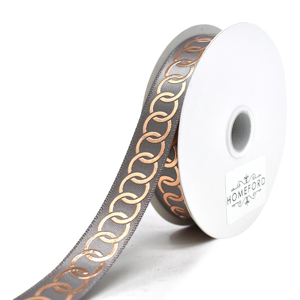 Add your own personal touch to any project! This ribbon features a metallic chain link pattern. Take your decorating or DIY to the next level!