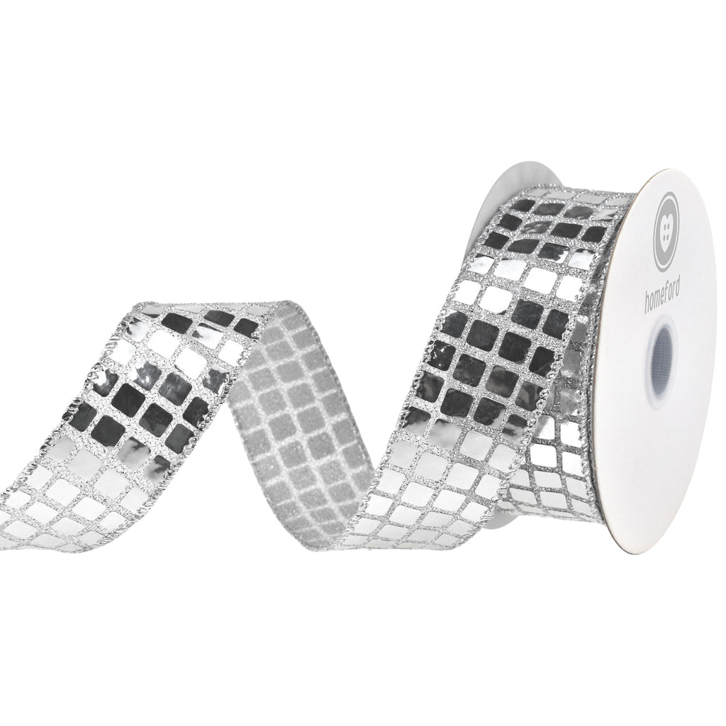 Metallic Disco Ball Sequins Wired Ribbon, 1-1/2-inch, 10-yard
