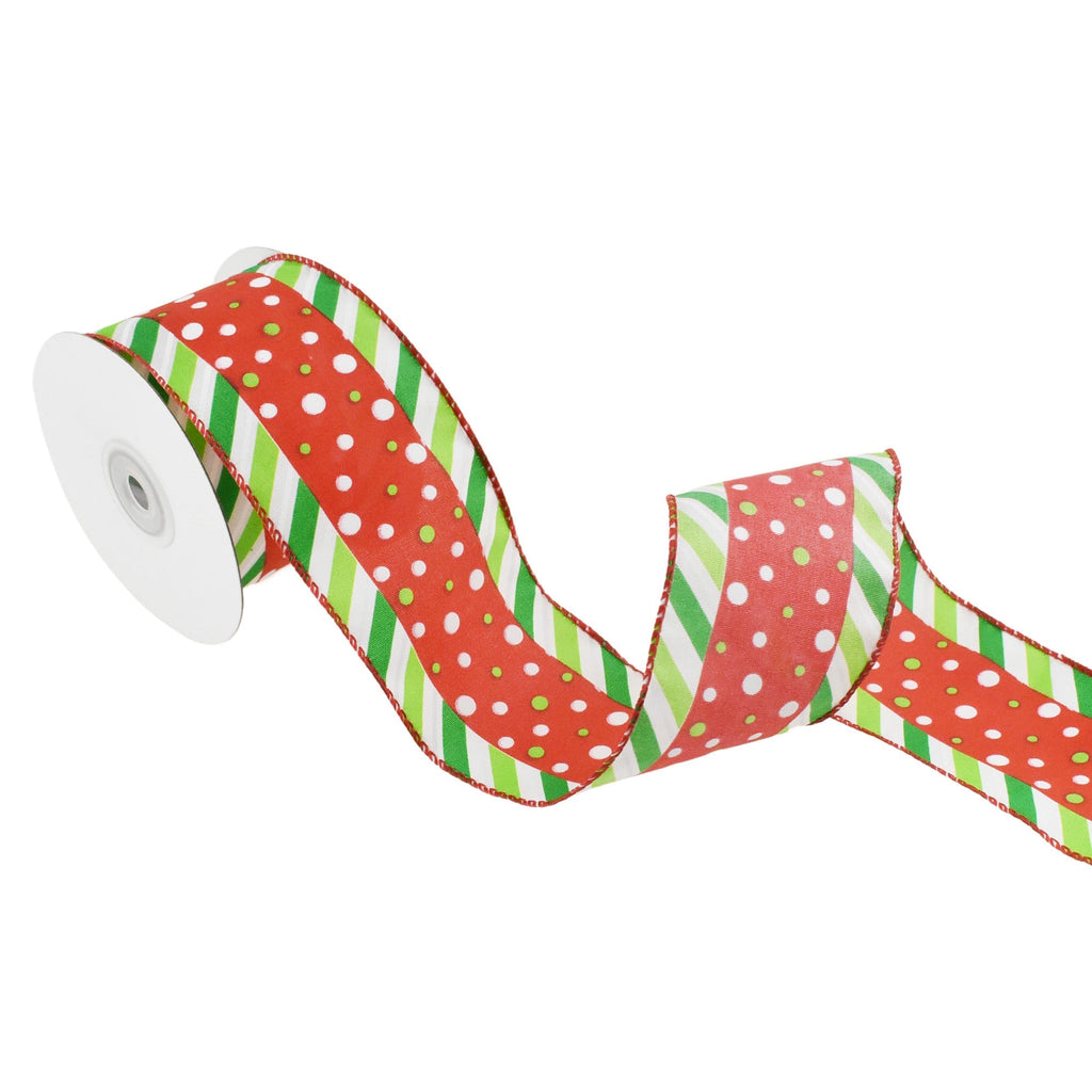 Christmas Polka Dots and Diagonal Ticking Wired Ribbon, 2-1/2-Inch, 10-Yard