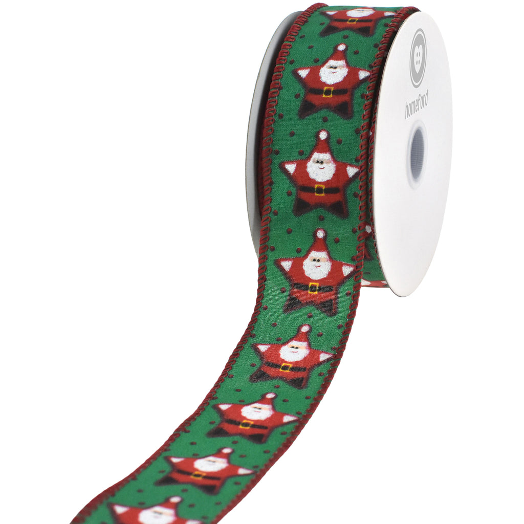 Elevate your holiday decor with our Christmas Star Shaped Santa Satin Wired Ribbon! Adorned with star-shaped Santas, this ribbon brings a joyful and festive flair to all your seasonal projects. Its wired edges make it easy to create stunning bows, wreaths, or decorative accents that stay in place, while the satin finish adds a touch of elegance to your festive creations.