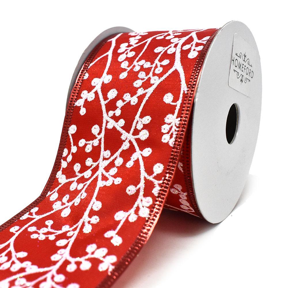 This ribbon is also great for arts and crafts, home decor projects and other DIY projects. Features a lovely berries and branches pattern on red satin ribbon. Made of polyester and nylon.
