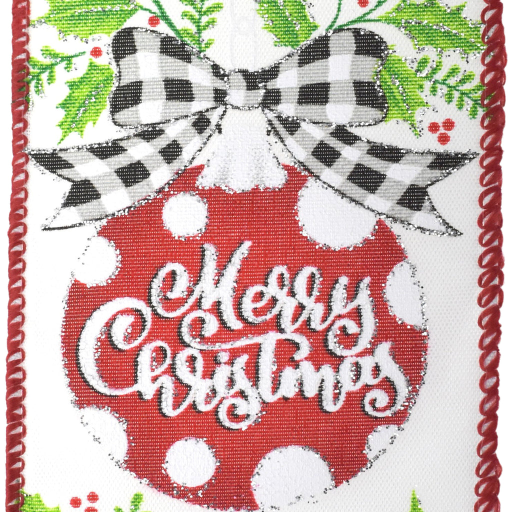 Merry Christmas Hanging Ornaments Satin Wired Ribbon, 2-1/2-inch, 10-yard
