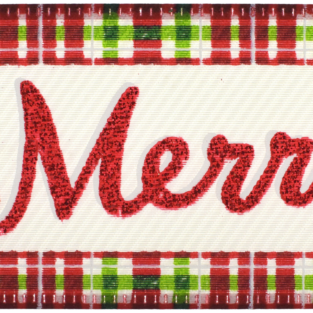Merry Christmas Plaid Edge Satin Wired Ribbon, 2-1/2-inch, 10-yard