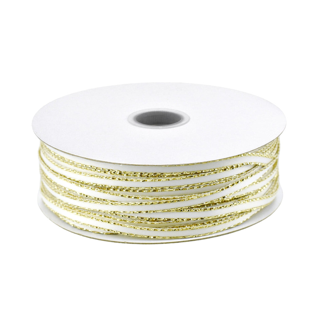 Satin Ribbon with Metallic Trim Edge, 1/8-inch, 50-yard