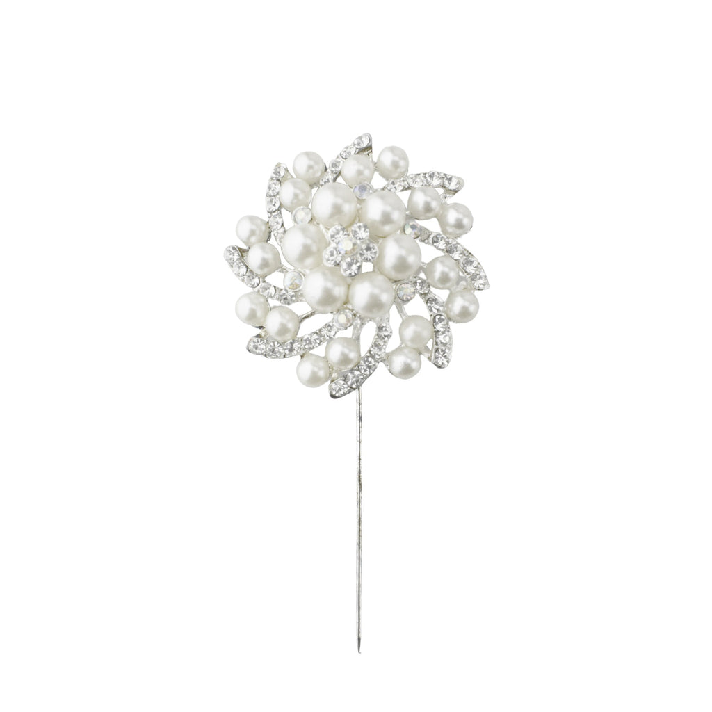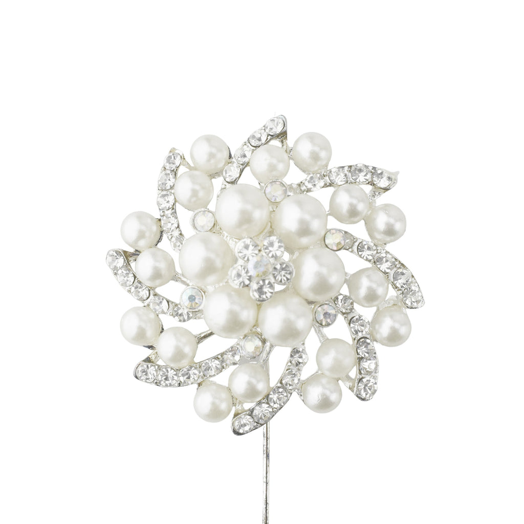 Rhinestone Swirling Pearls Pins, 3-3/4-Inch, 3-Count - Silver