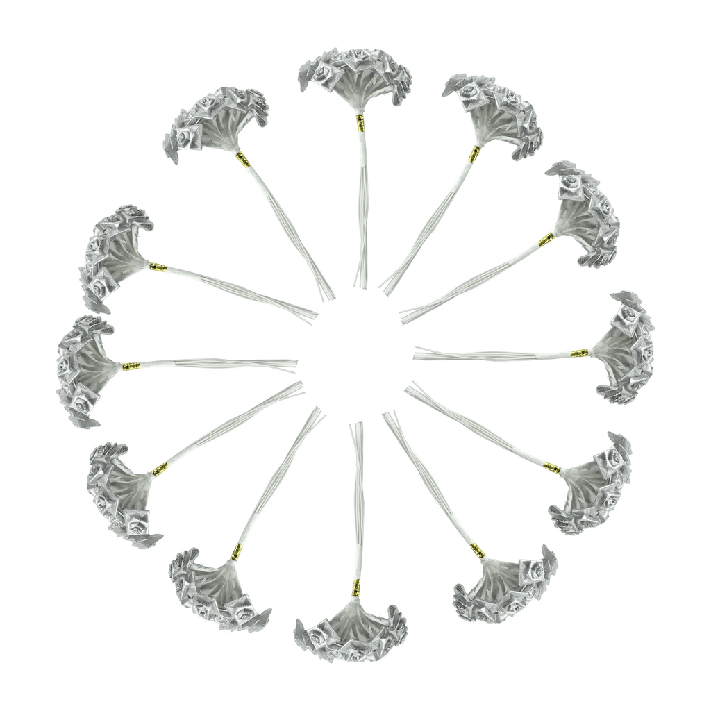 Rose Bouquet Spray, 4-Inch, 12 Count - Silver