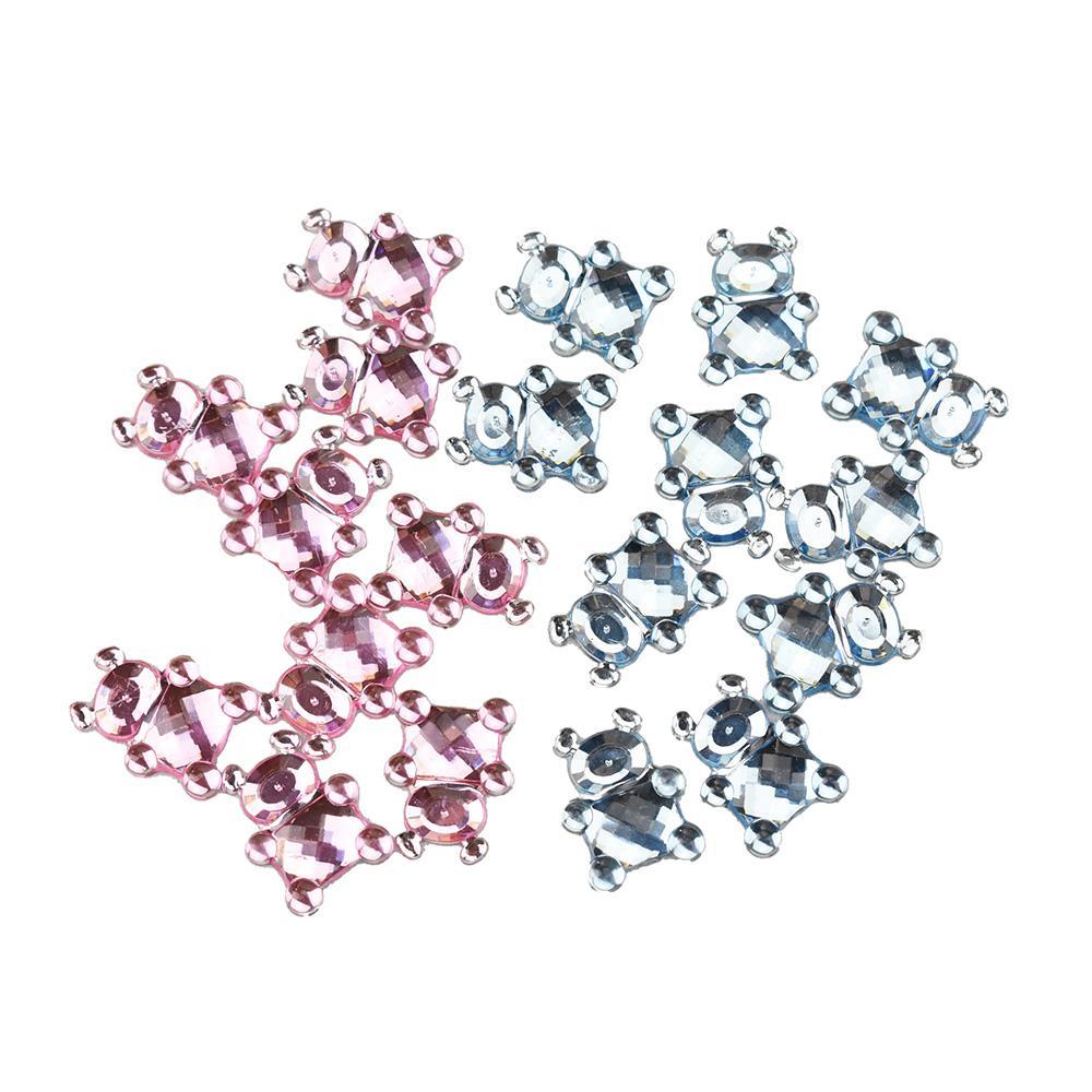 Features a gem teddy bear in blue or pink color. Each order comes with 36 gem confetti pieces of the teddy bears in a blue or pink color. Note: Gem confetti is one-sided. Measurements are for individual table scatter.
