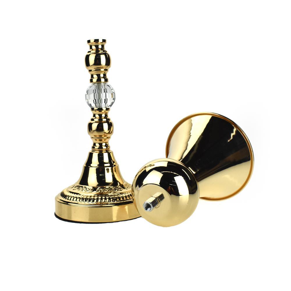 This metal trumpet vase makes a wonderful and elegant centerpiece. Add a flower ball or elegant bouquet on top and see how it will bring your event to life! Mix and match trumpet heights to add variety and dimension to your table decorations. This gold vase is beautifully reflective, and features an intricate design. This beautiful gold vase is sure to grab your guest's attention! Some assembly required, see secondary picture for details.