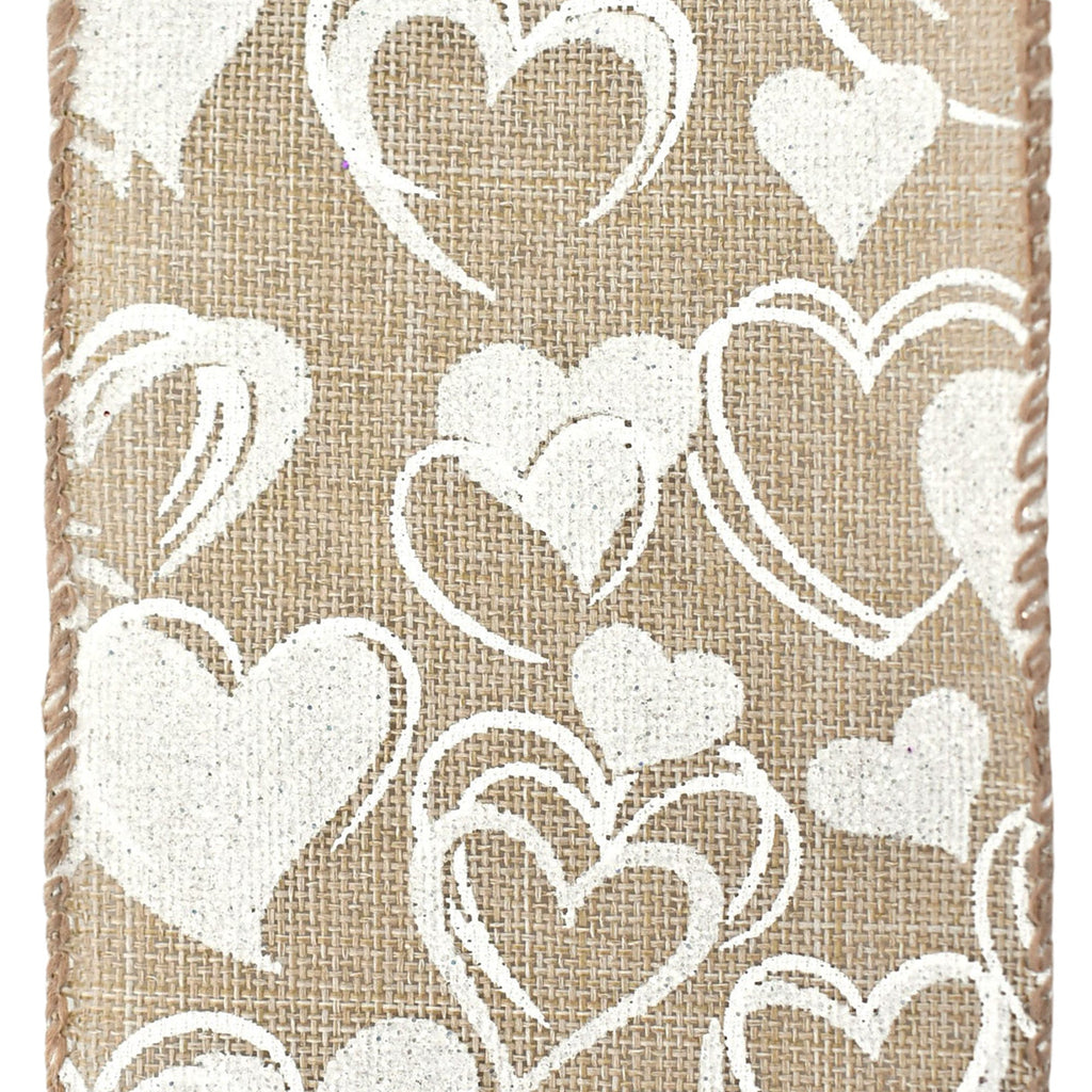 Valentine's Glittered Hearts Faux Linen Wired Ribbon, 2-1/2-inch, 10-yard