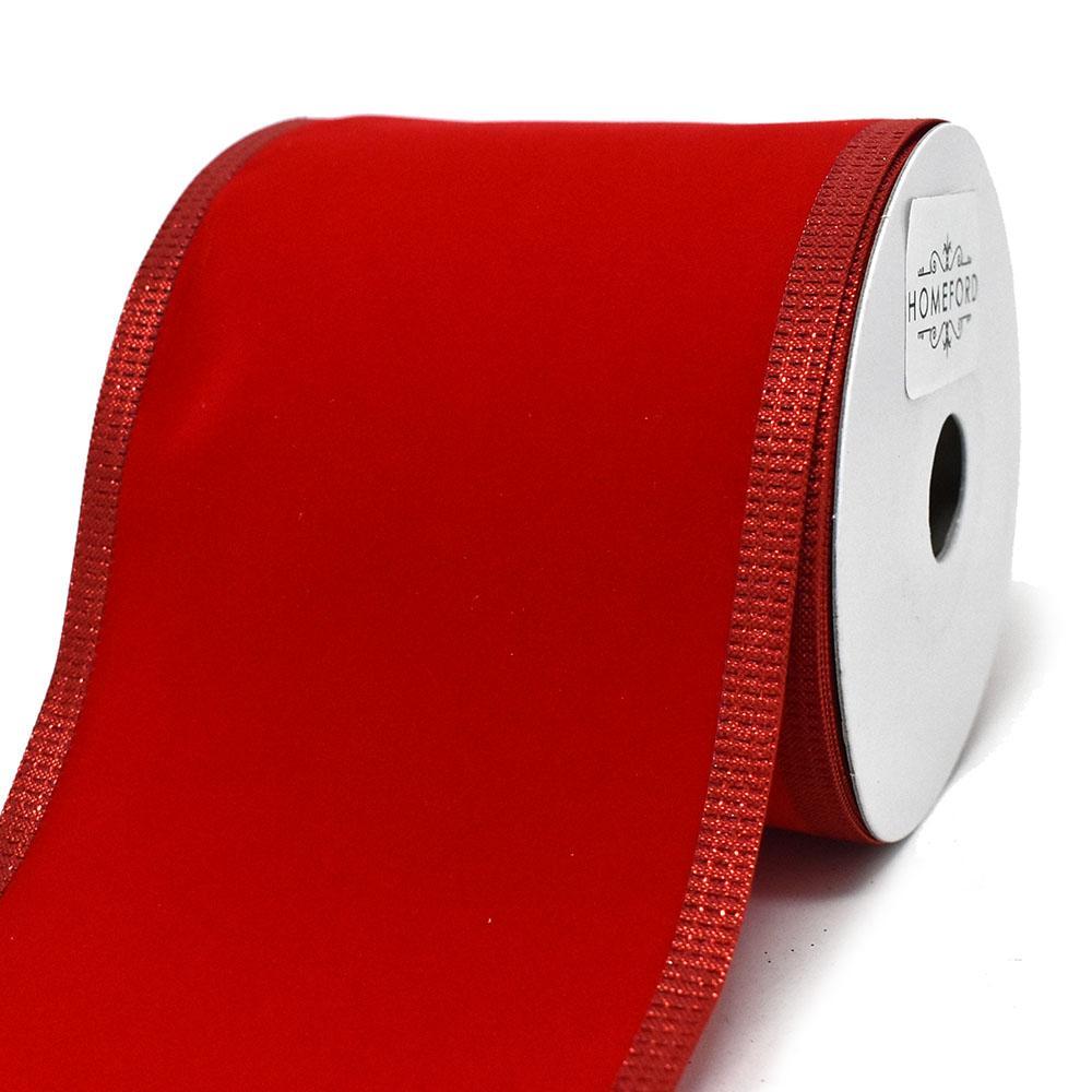 Red Velvet Metallic-Colored Trim Wired Ribbon, 4-Inch, 10-Yard