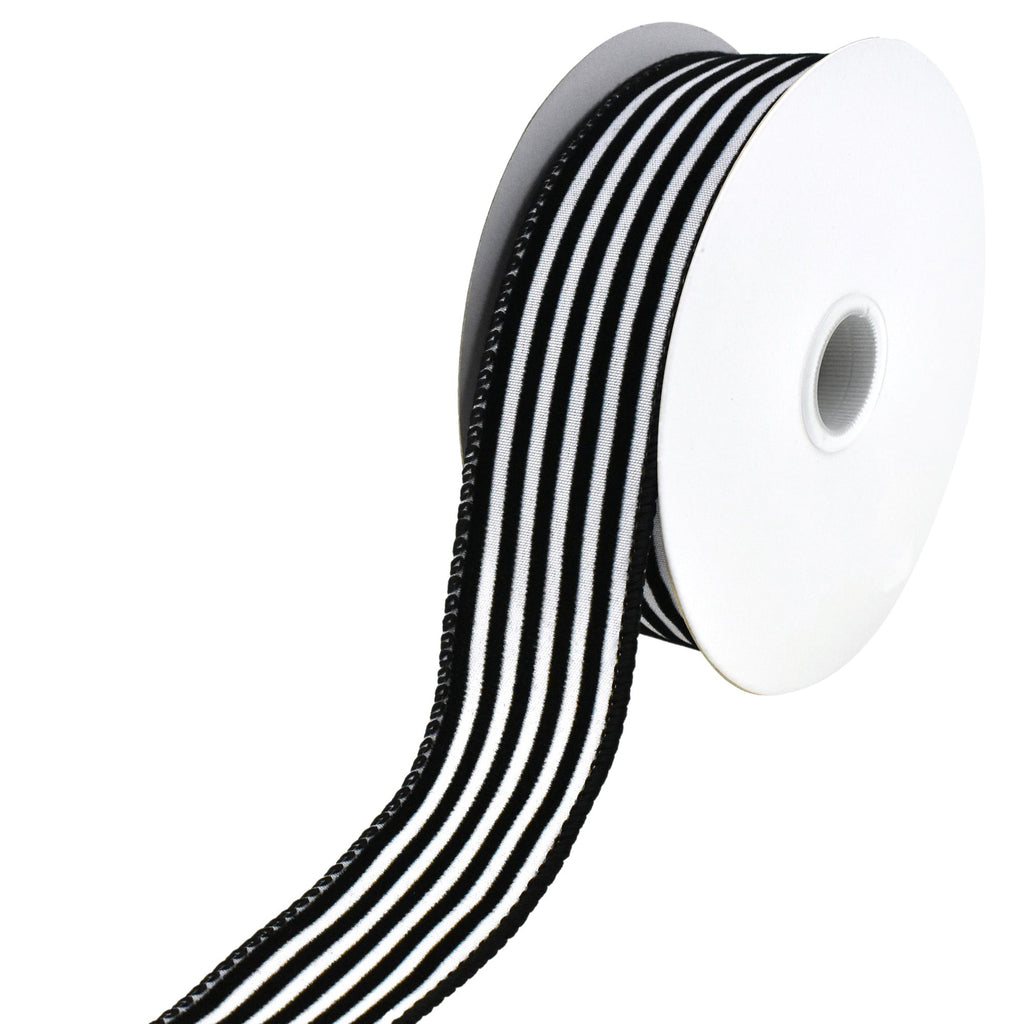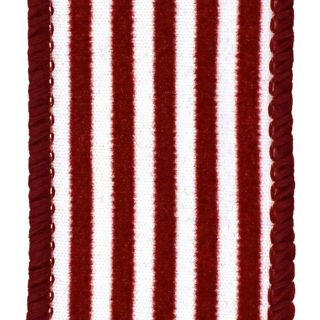 Flocked Velvet Cabana Stripes Wired Ribbon, 1-1/2-Inch, 10-Yard