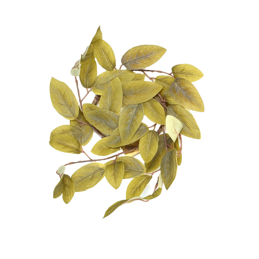 Accentuate your candles and make them the center of your home display with this candle ring! This ring features a ring of tree branches adorned with a beautiful assortment of rustic birch leaves. Ideal for any Autumn home display.