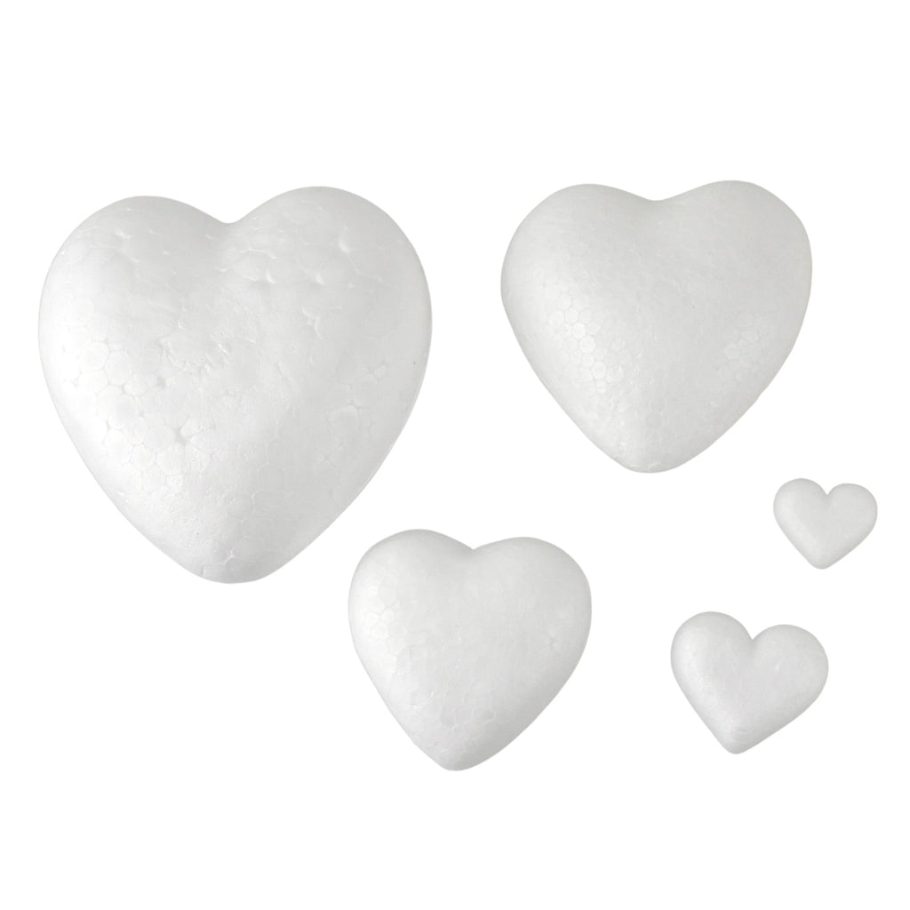 Our polyfoam craft hearts are lightweight and easy to work with, making them perfect for kids' crafts or more intricate projects. And with their smooth surface, they're the ideal canvas for painting, gluing, and decorating with all sorts of materials like glitter, sequins, and more. Not only are these craft hearts fun to use, but they're also durable and long-lasting, ensuring that your creations will stay looking great for years to come! Pack: 15 pcs (1 X-Large, 2 Large, 3 Medium, 4 Small, 5 X-Small) X-Large Length: 2.875" Large Length: 2.25" Medium Length: 1.75" Small Length: 1.125" X-Small Length: 0.75"