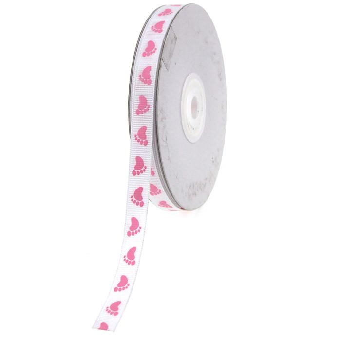 Baby Foot Print Grosgrain Ribbon, 3/8-Inch, 25-yard