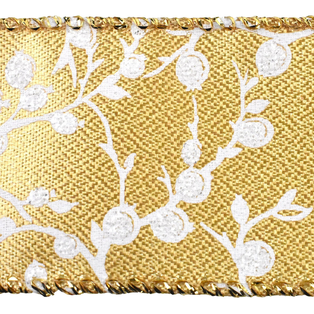 Branch out and decorate with this stunning holiday ribbon. This ribbon features silhouettes of holiday berry branches in shiny metallic colors, making it a great accent for any occasion throughout the year. Use it to wrap presents, tie up your hair, or add just the right amount of holiday flair to any occasion.