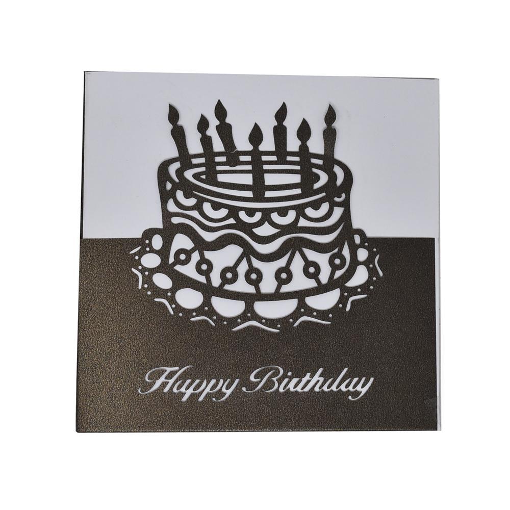 Blank Square Laser Cut Happy Birthday with Cake Invitation, Brown, 4-3/4-Inch