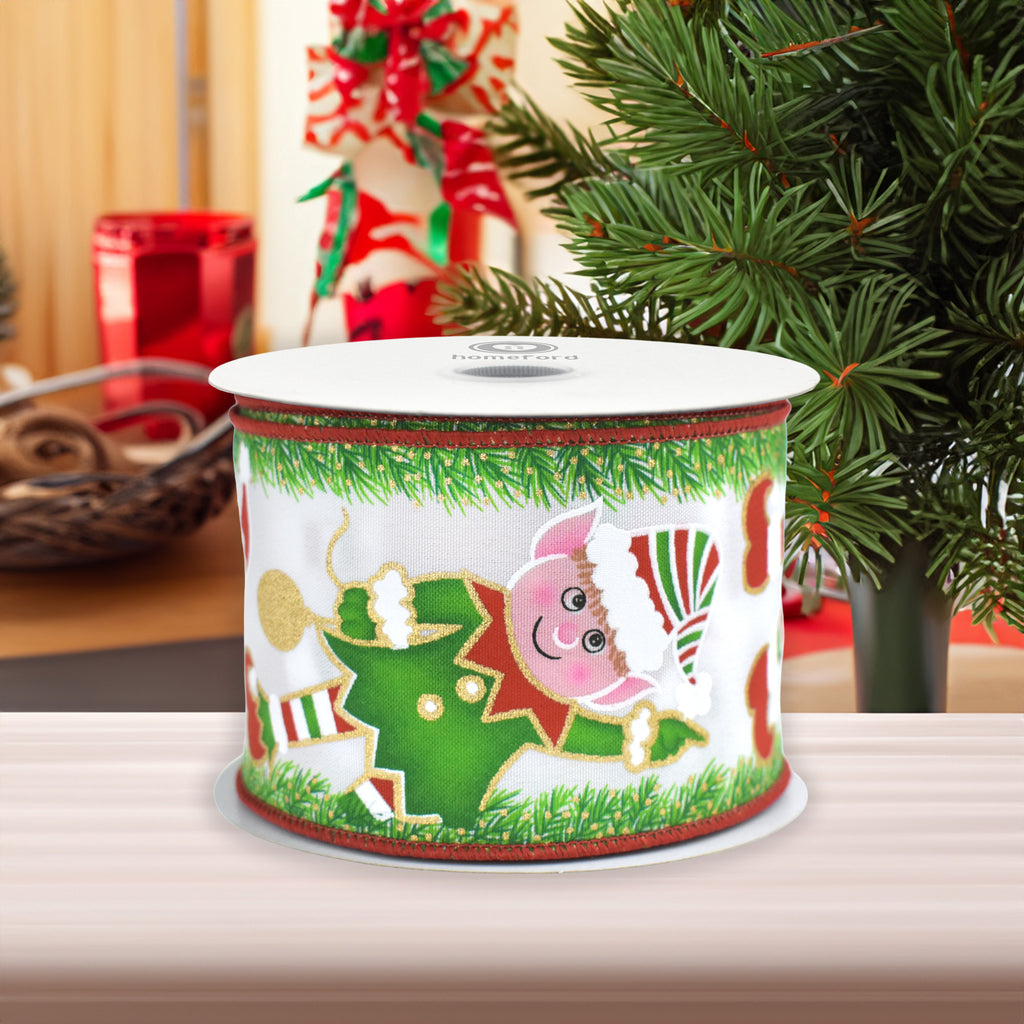 Add a playful sparkle to your holiday décor with our Christmas Metallic Elves Wired Ribbon. Featuring cheerful elves dressed in festive metallic accents, this ribbon brings whimsical charm and a touch of shimmer to your seasonal designs. The wired edges allow for effortless shaping, making it ideal for creating bows, wrapping gifts, or accenting wreaths, garlands, and centerpieces.