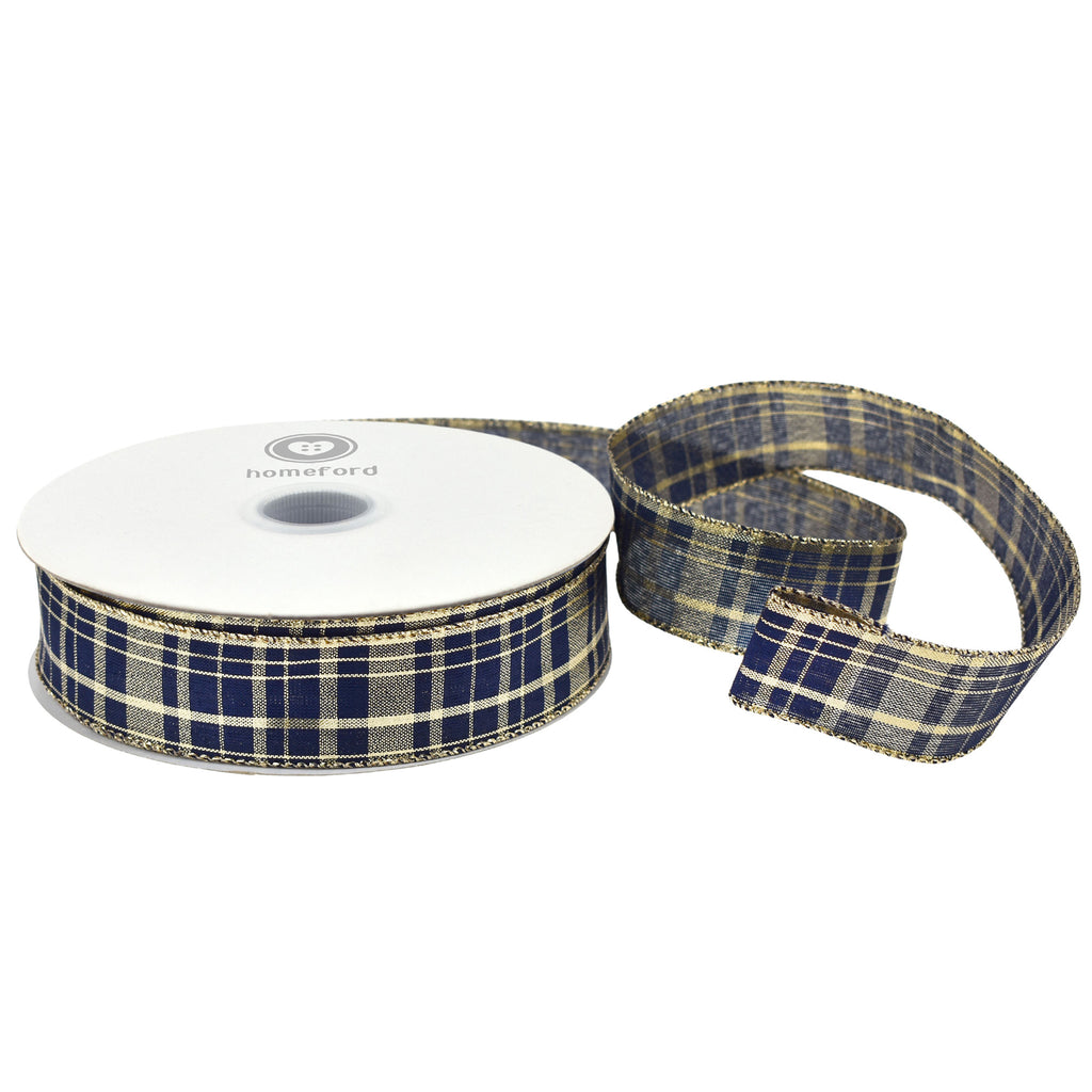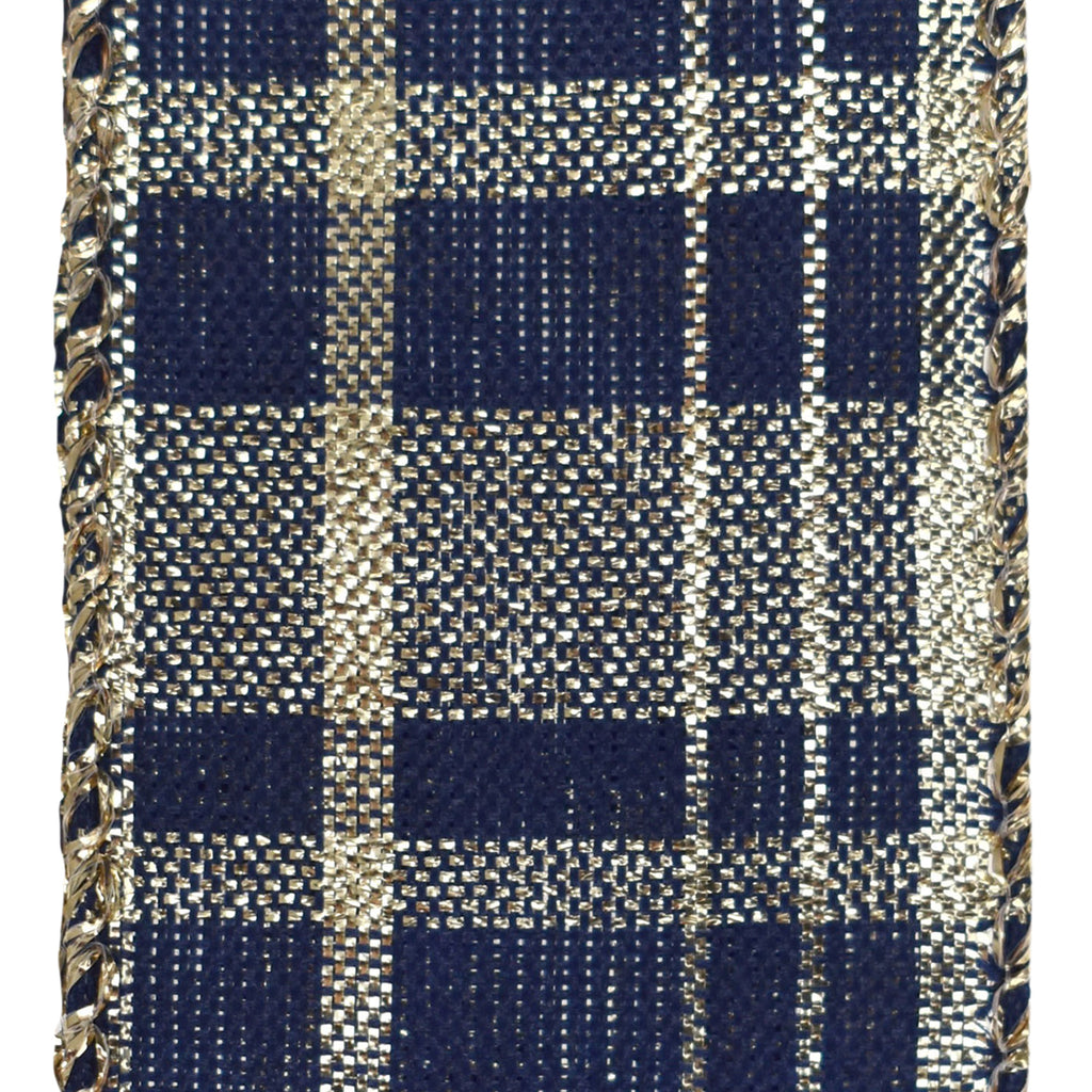 Christmas Metallic Plaid Wired Ribbon, 1-1/2-inch, 50-yard, Navy