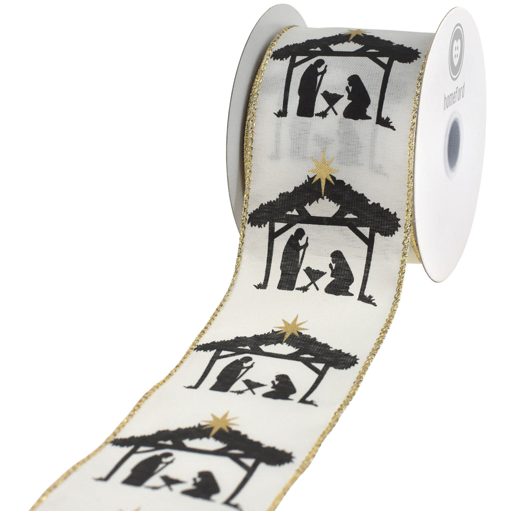 Christmas Nativity Scene Satin Wired Ribbon, 2-1/2-inch, 10-yard