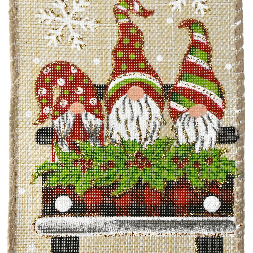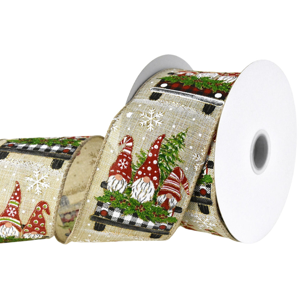 Christmas Plaid Pickup Trucks and Gnomes Wired Ribbon, 2-1/2-yard, 10-yard