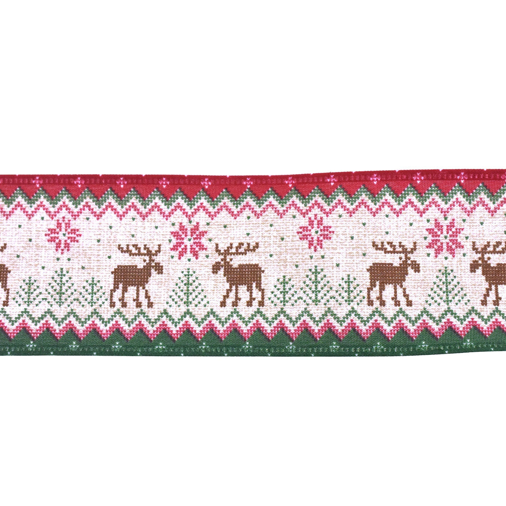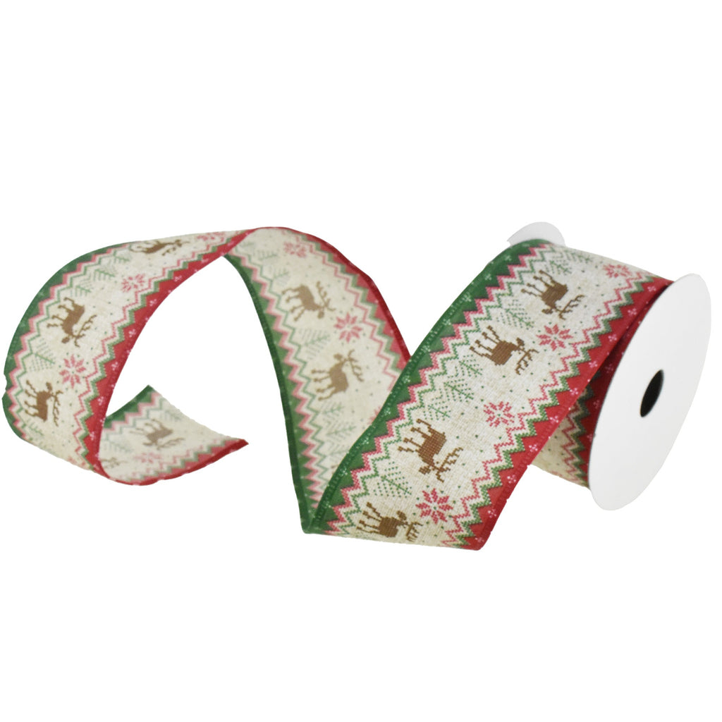 Christmas Reindeer Red/Green Wired Ribbon, 2-1/2-Inch, 10-Yard - Natural