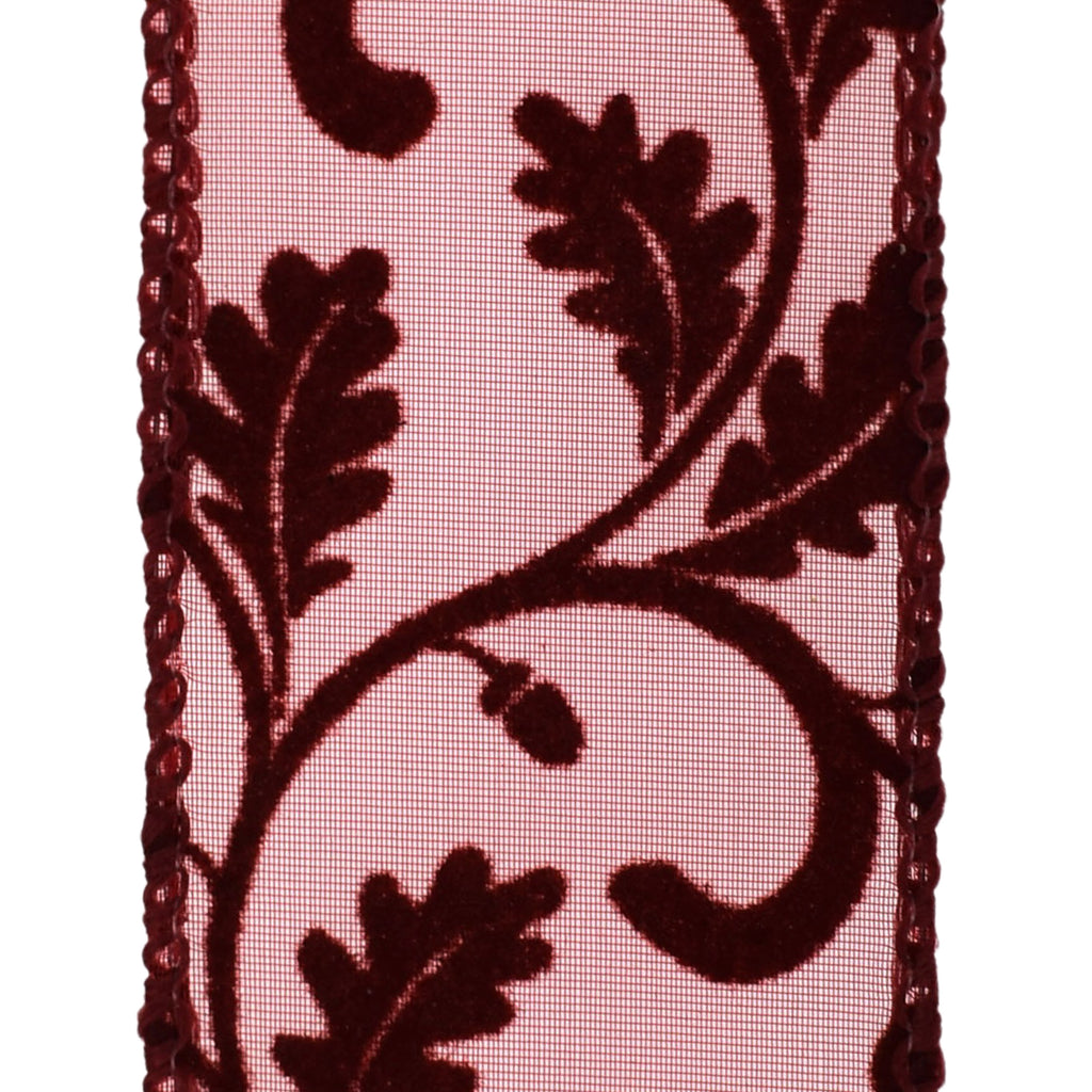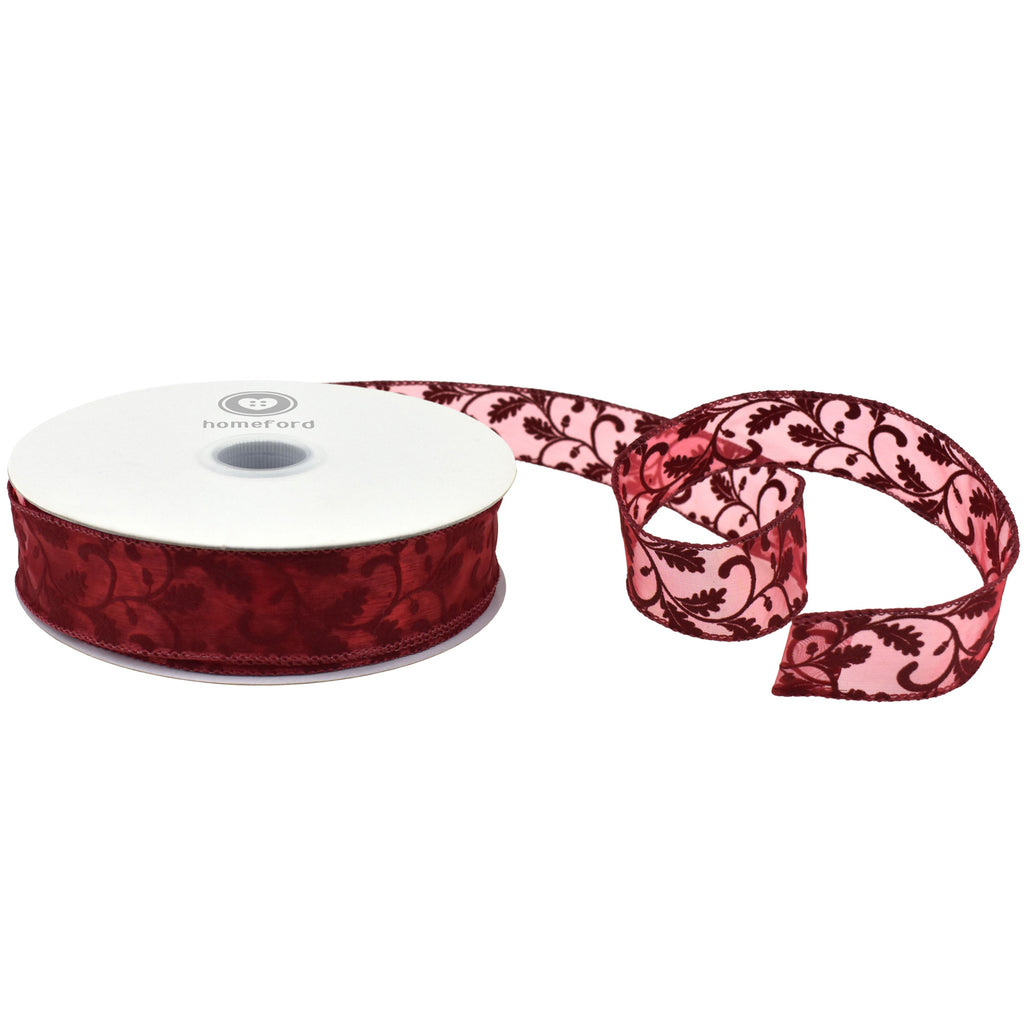 Christmas Sheer Organza Flocked Leaf Swirls Wired Ribbon, 1-1/2-inch, 50-yard
