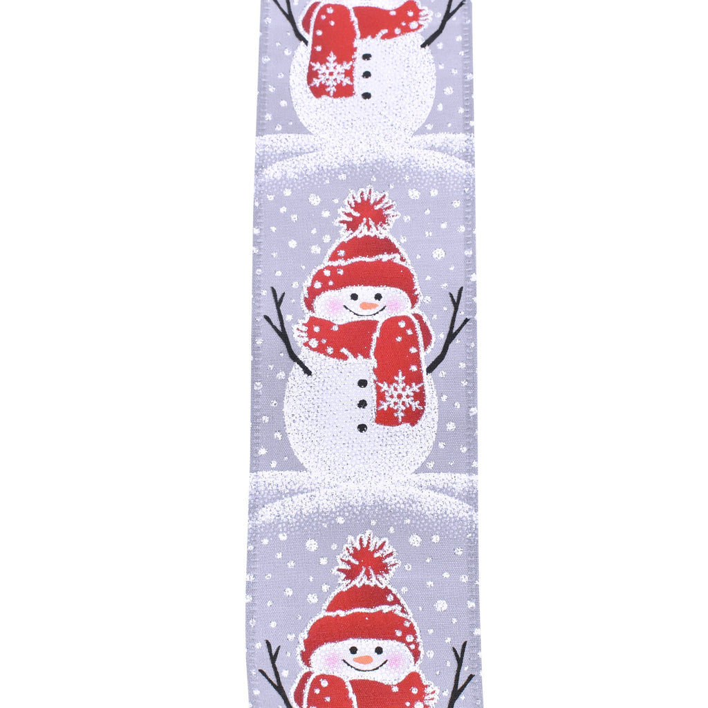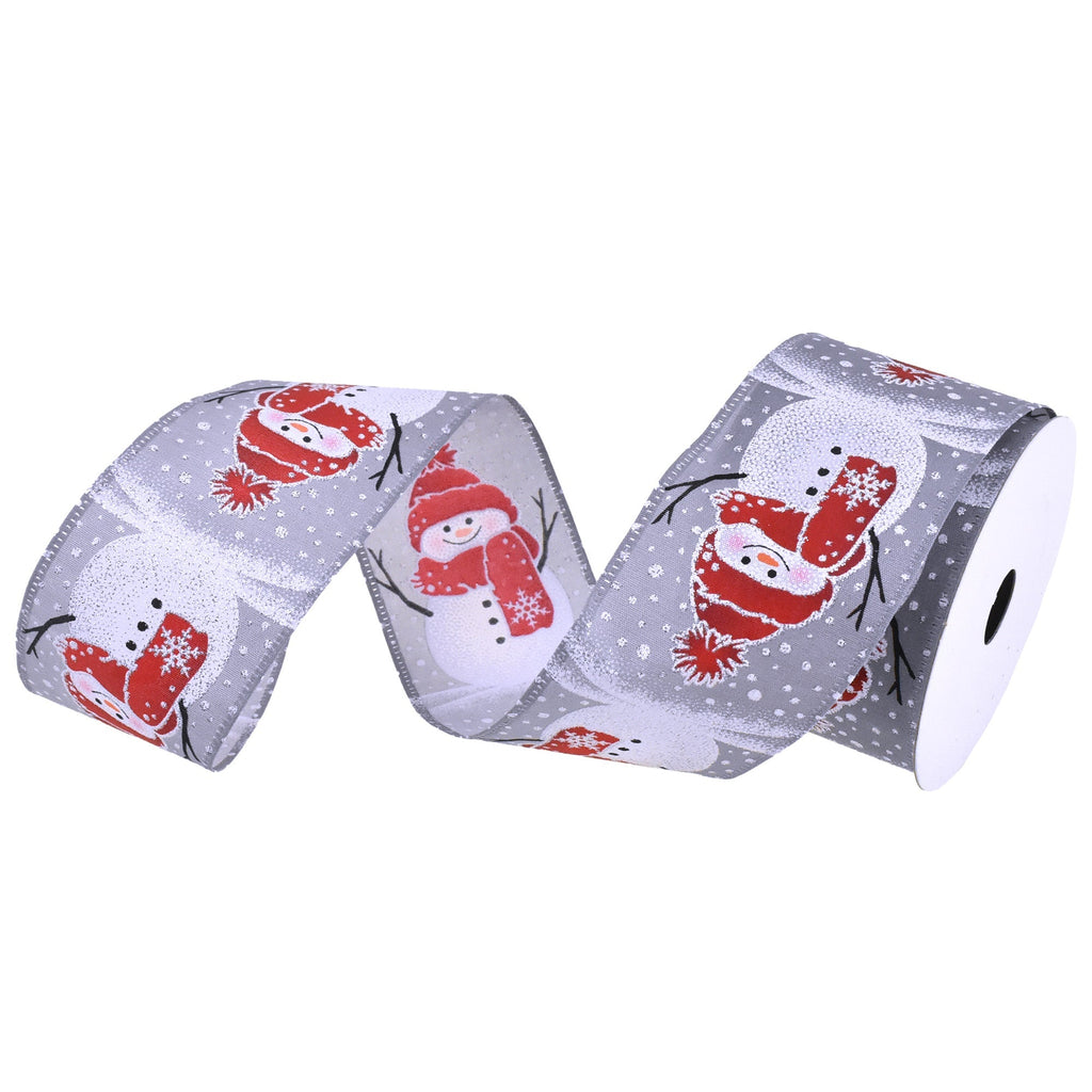 Christmas Snowman In Beanie Grey Wired Ribbon, 2-1/2-Inch, 10-Yard