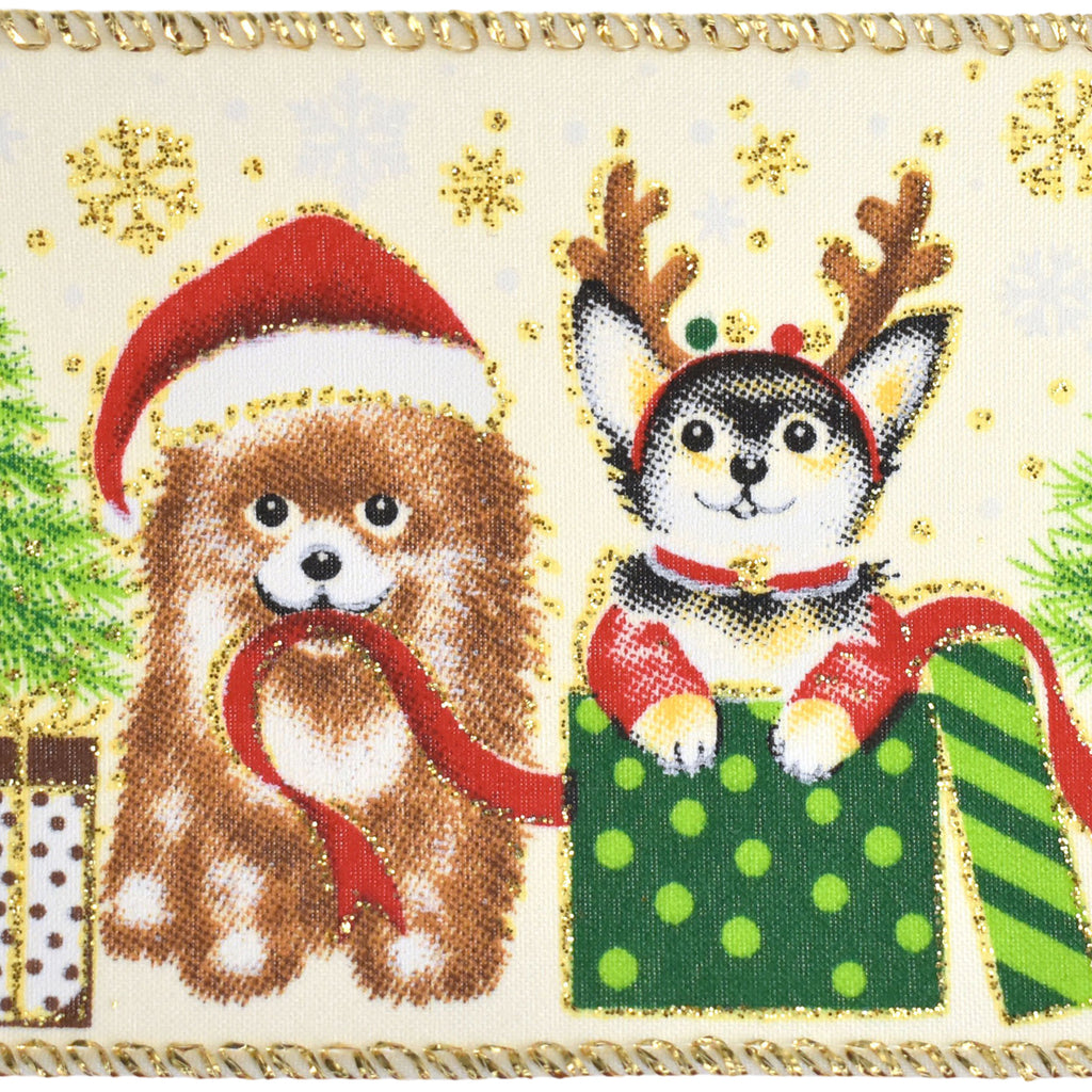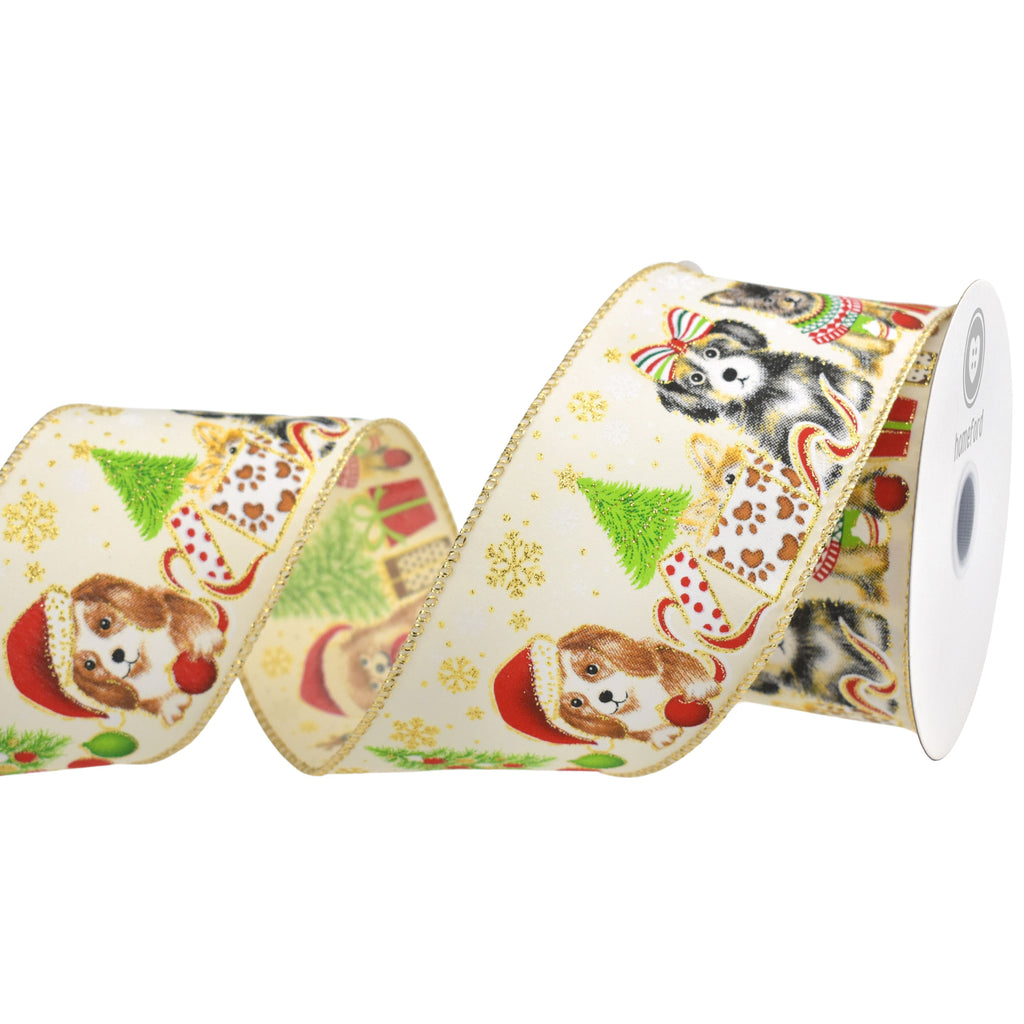 Christmas Tree Doggies Satin Wired Ribbon, 10-yard