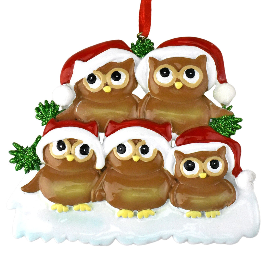 Cute Owl Family of Five Christmas Ornament, 3-1/2-Inch