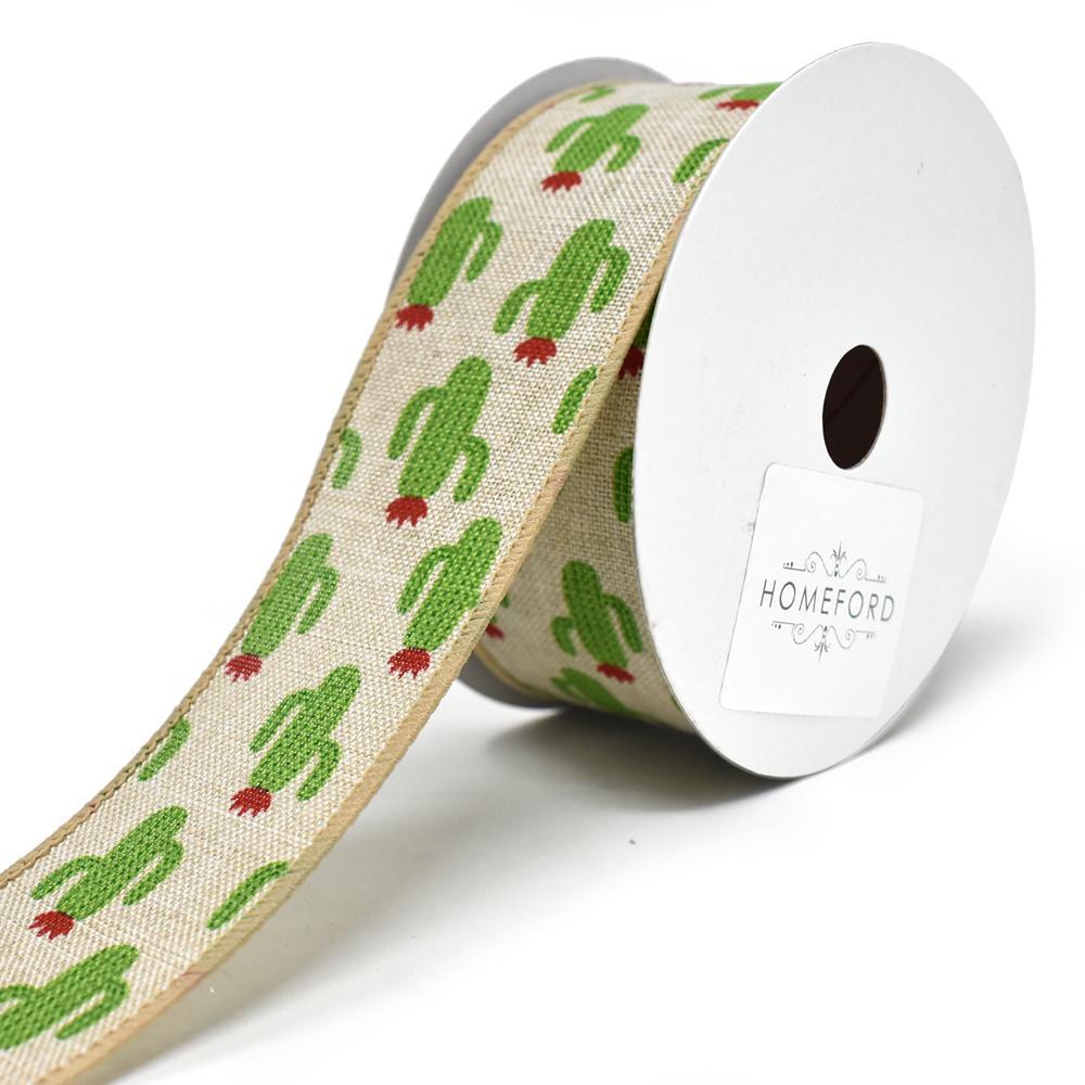 Deco Cactus Wired Linen Ribbon, 1-1/2-Inch, 10-Yard