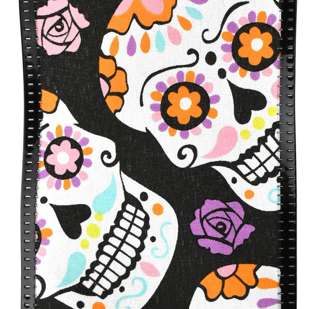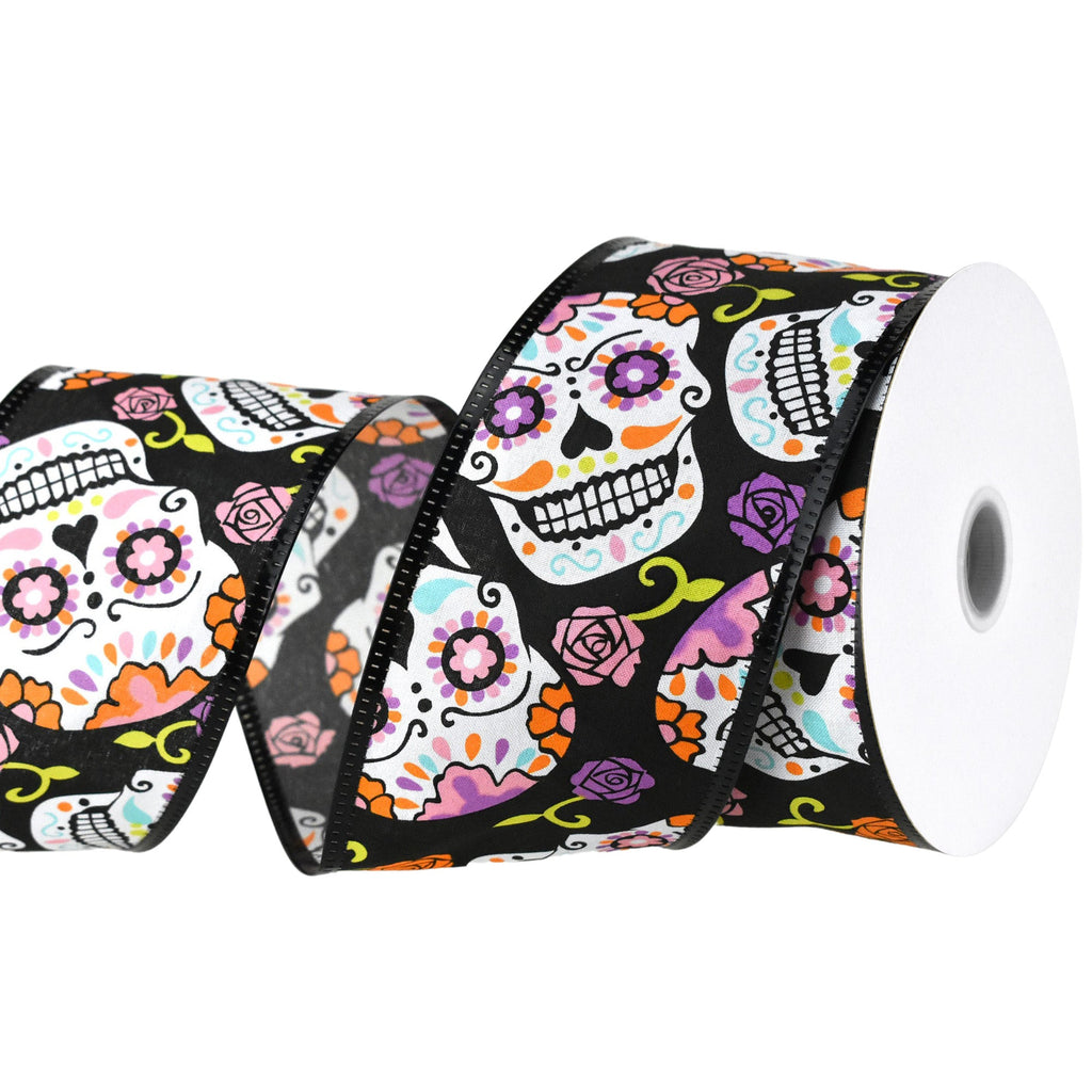 Dia de los Muertos Skulls Satin Wired Ribbon, 2-1/2-inch, 10-yard