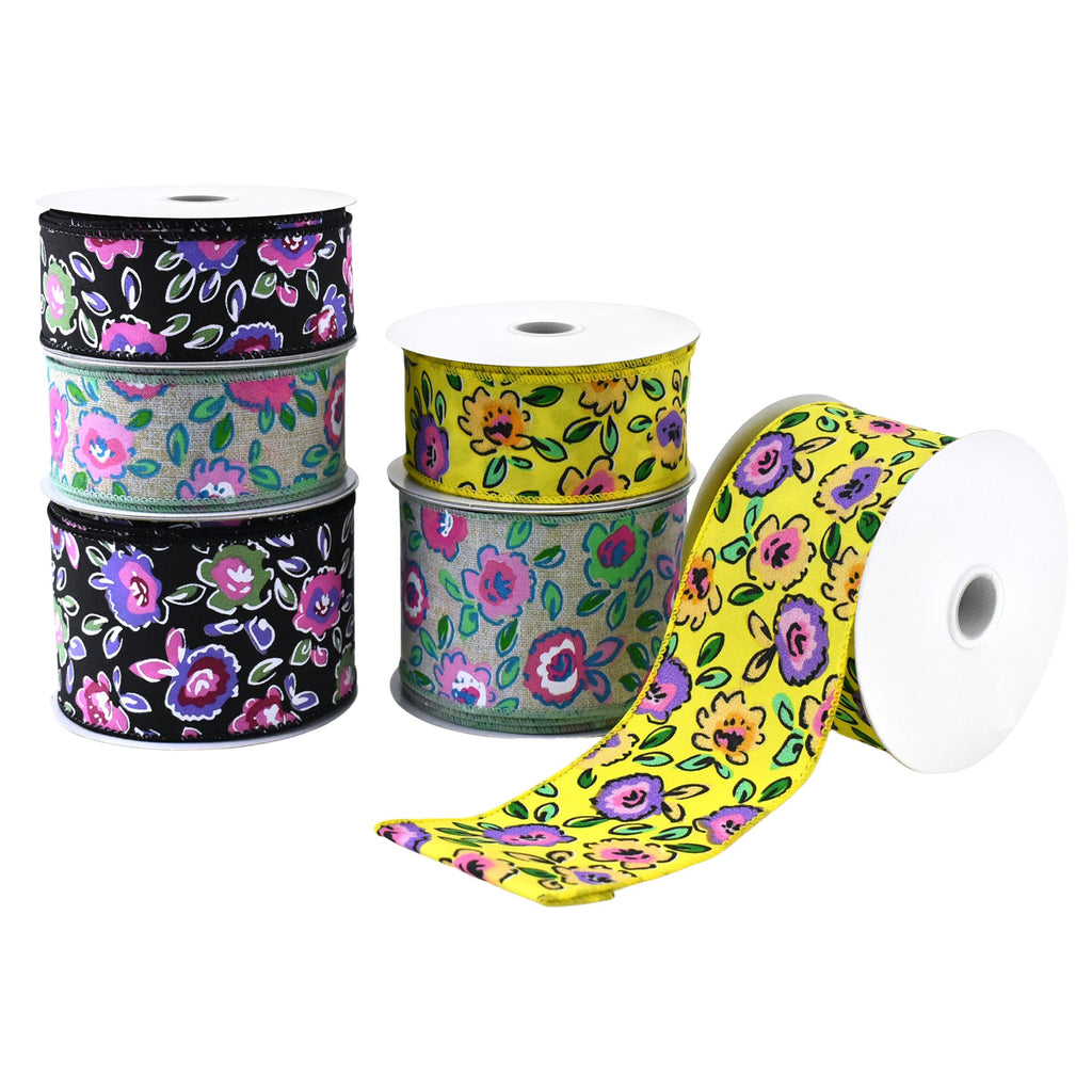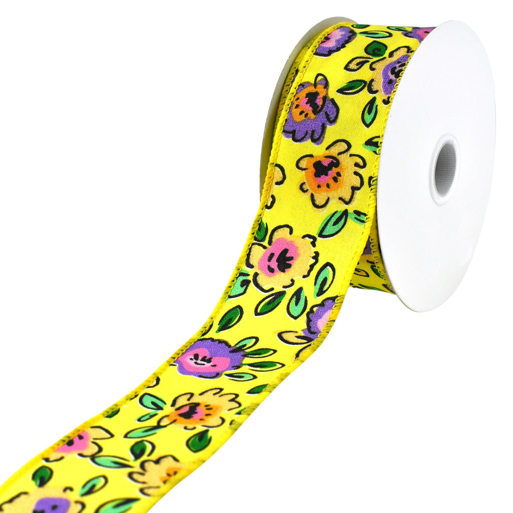 Electric Cartoon Flowers Wired Ribbon, 10-yard