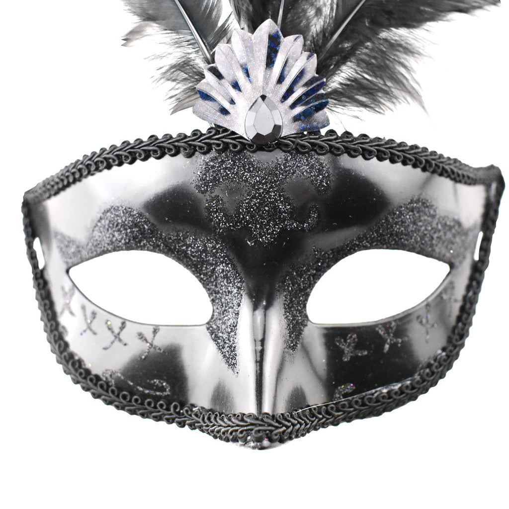 Fancy Feather Masquerade Mask, 7-Inch x 3-1/4-Inch - Black
