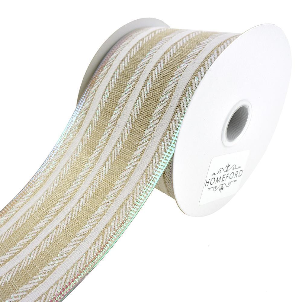 Feathered Stripes Iridescent Edge Linen Wired Ribbon, 10-yard
