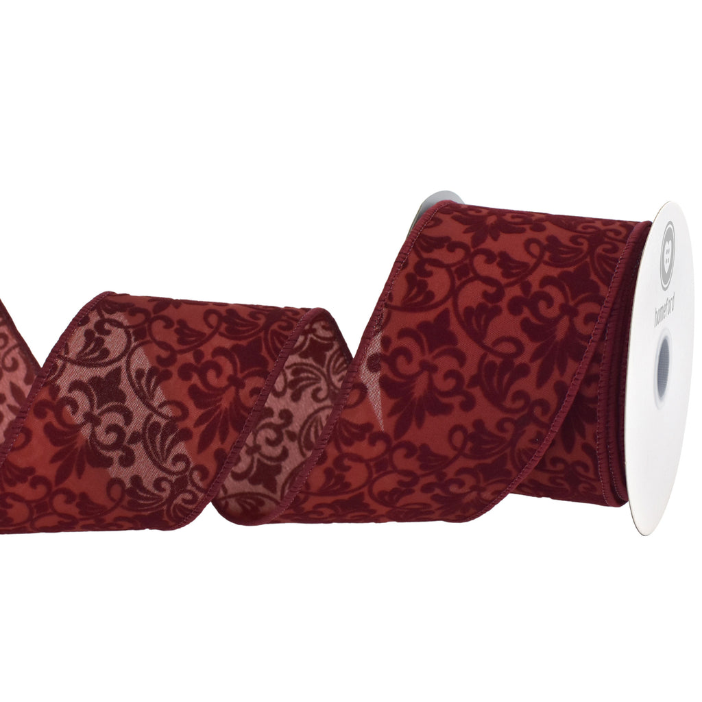 Flocked Damask Pattern Satin Wired Ribbon, 2-1/2-inch, 10-yard
