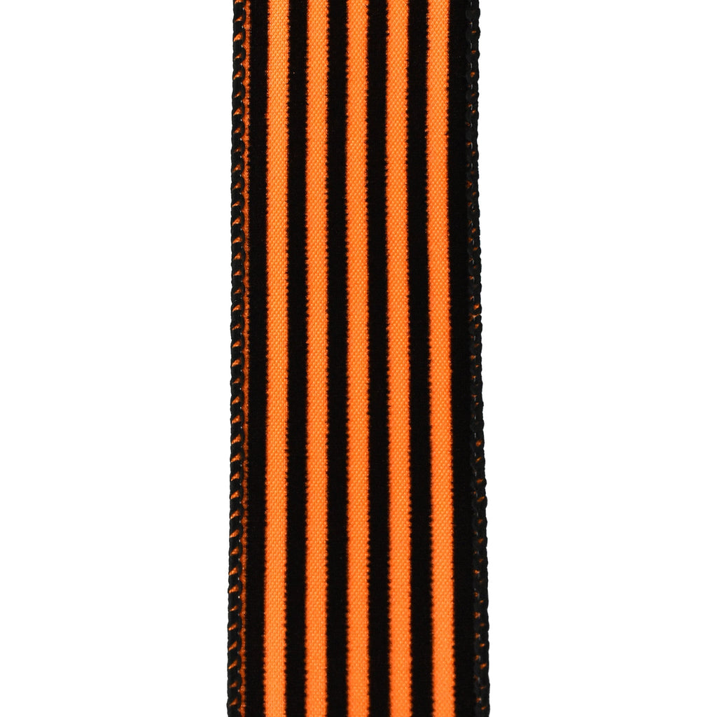 Flocked Halloween Cabana Stripes Wired Ribbon, 1-1/2-Inch, 10-Yard