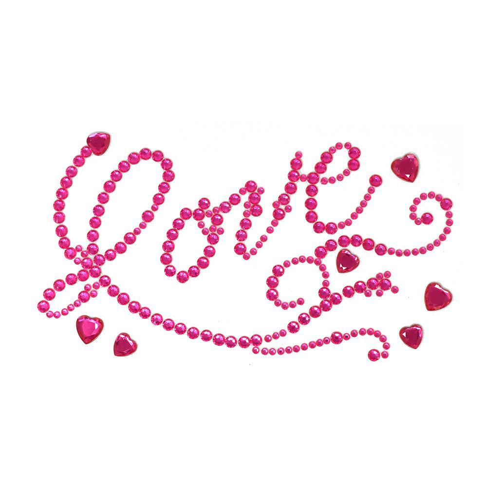 Flourished 'Love' Script and Hearts Rhinestone Stickers, 7-Inch, 6-Piece