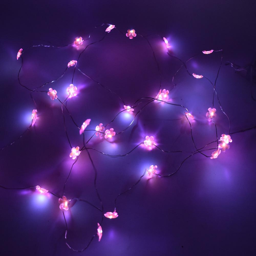 Illuminate your home or Christmas Tree in style with these battery operated fairy string lights. Perfect to decorate table centerpieces or simply wrap around vases to give them that special look. The string lights have little butterflies attached to them! The warm light off these flowers will surely brighten your Christmas! The actual flowers on the wire are pink.