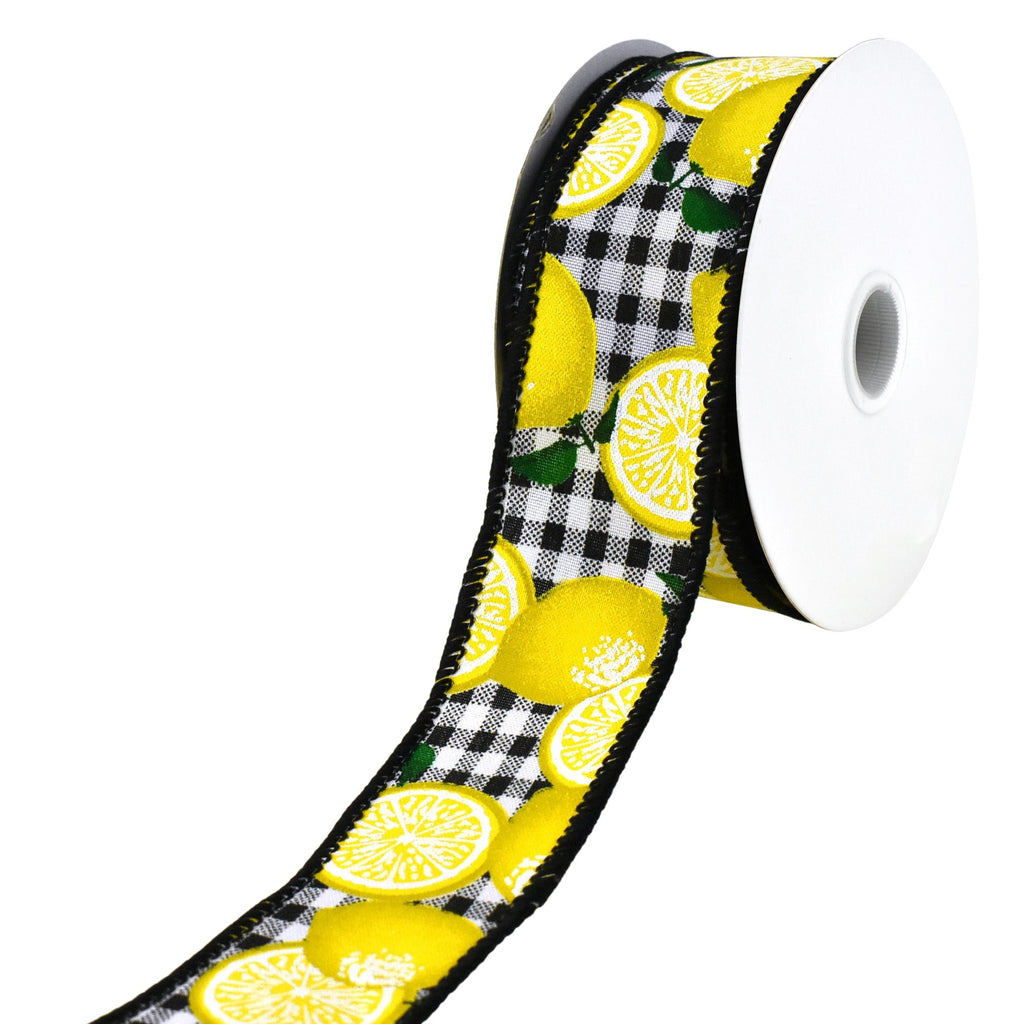 Gingham Printed Lemons Wired Ribbon, 10-yard