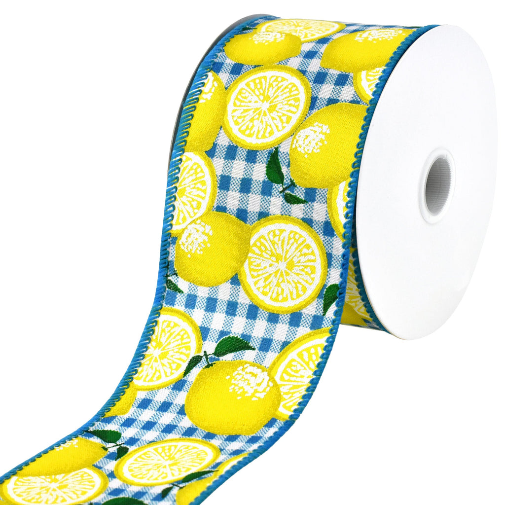 Add your own touch to any project! This ribbon features refreshing lemons on a classic plaid canvas for the perfect finishing touch to any home decor, DIY, or craft project you use these with. Take your decorating or DIY to the next level! Note: Contains wire Length: 10 yd