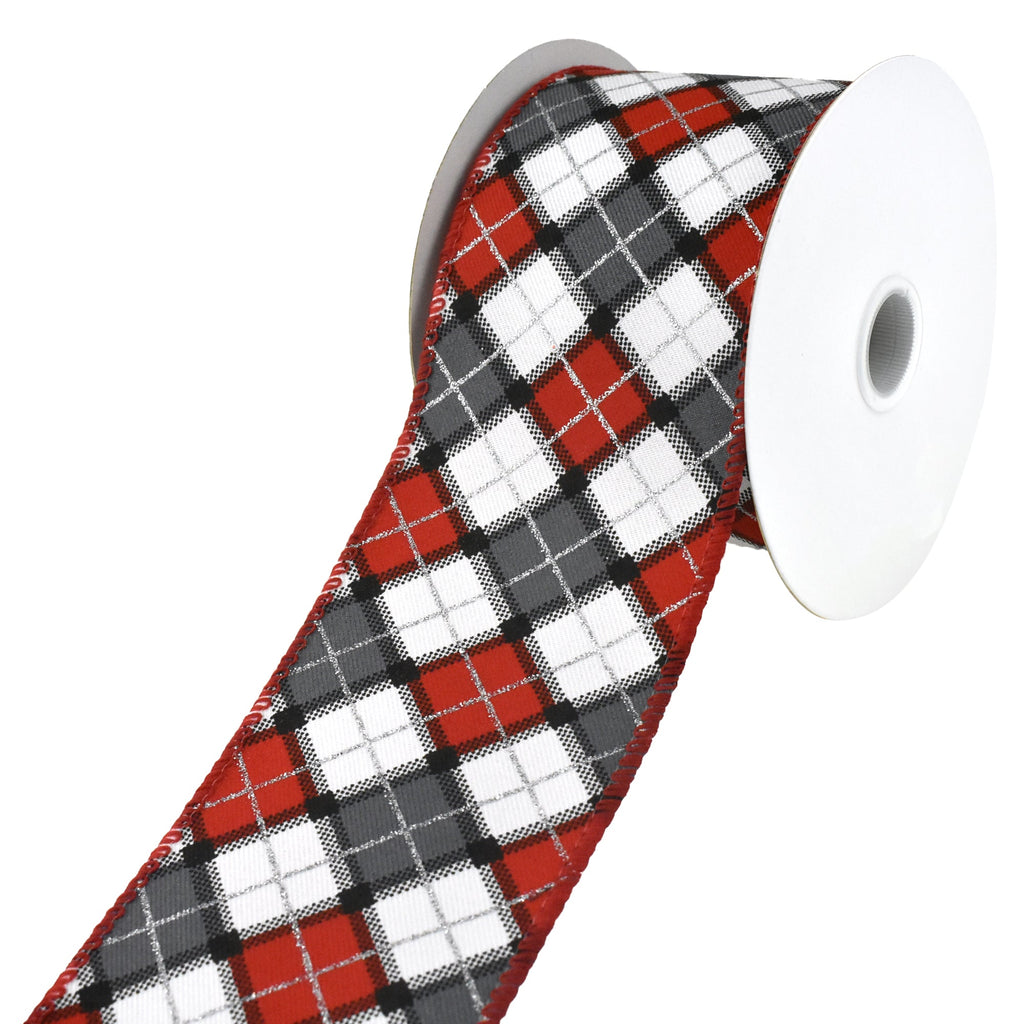 Glitter Christmas Claire Plaid Wired Ribbon, 2-1/2-Inch, 10-Yard