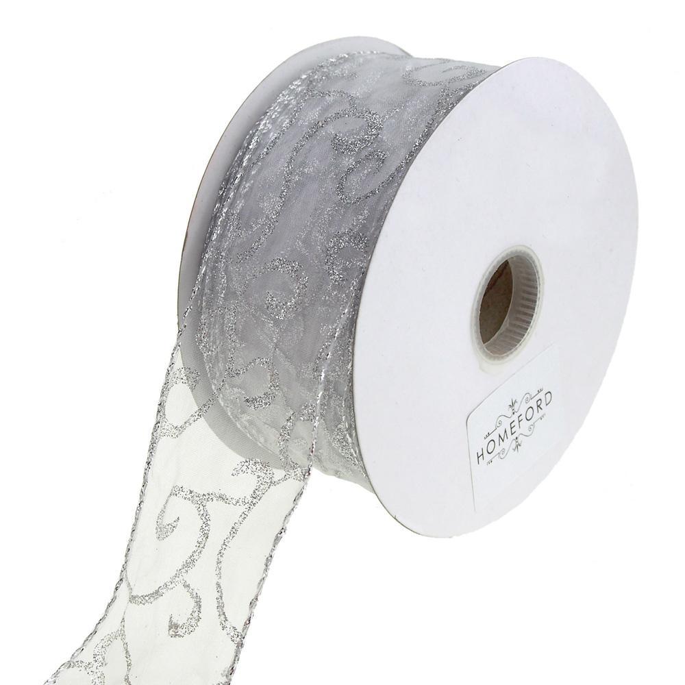 Glitter Swirl Organza Wired Christmas Holiday Ribbon, 2-1/2-Inch, 50 Yards