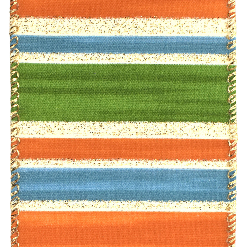 Glittered Fall Color Stripes Satin Wired Ribbon, 10-yard