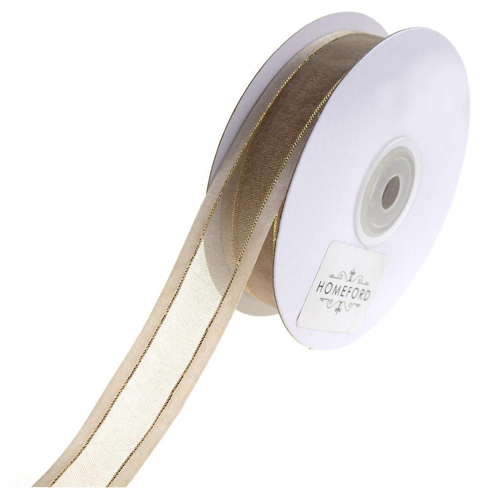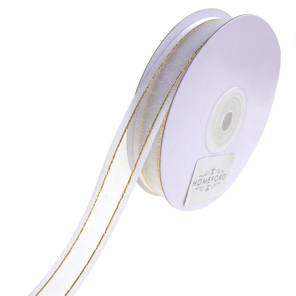 Gold-Lined Satin Edge Organza Ribbon, 25-yard