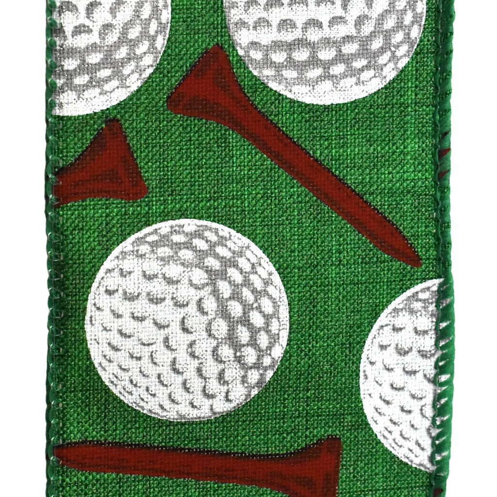 Golf Balls and Tees Sports Wired Ribbon, 2-1/2-inch, 10-yard
