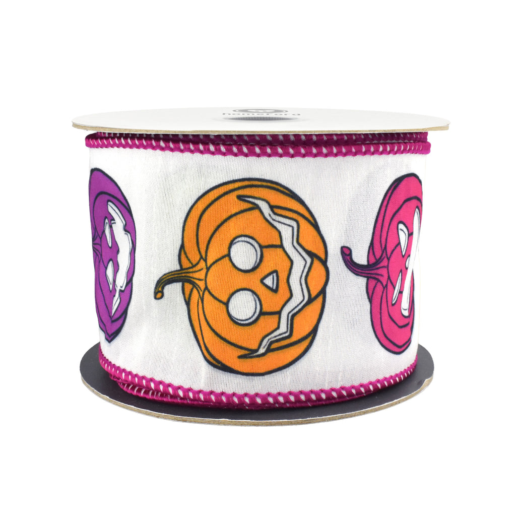 Halloween Colorful Jack-O-Lantern Dupioni Wired Ribbon, 2-1/2-inch, 10-yard