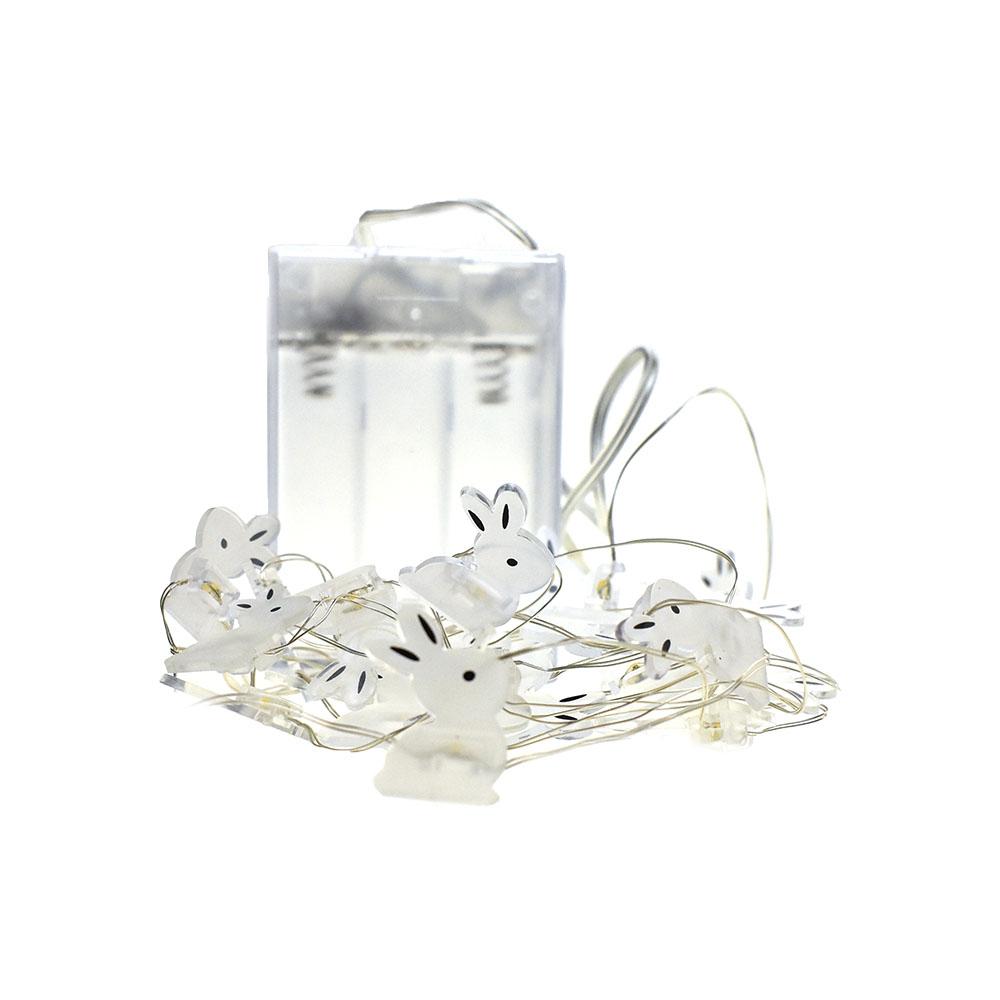 Light up any room, accessories, DIY projects, and more your way with this set of unique, patterned string lights! This set includes 20 LED lights shaped like bunnies, perfect for the Spring season. These lights require three AA batteries (not included) to operate.