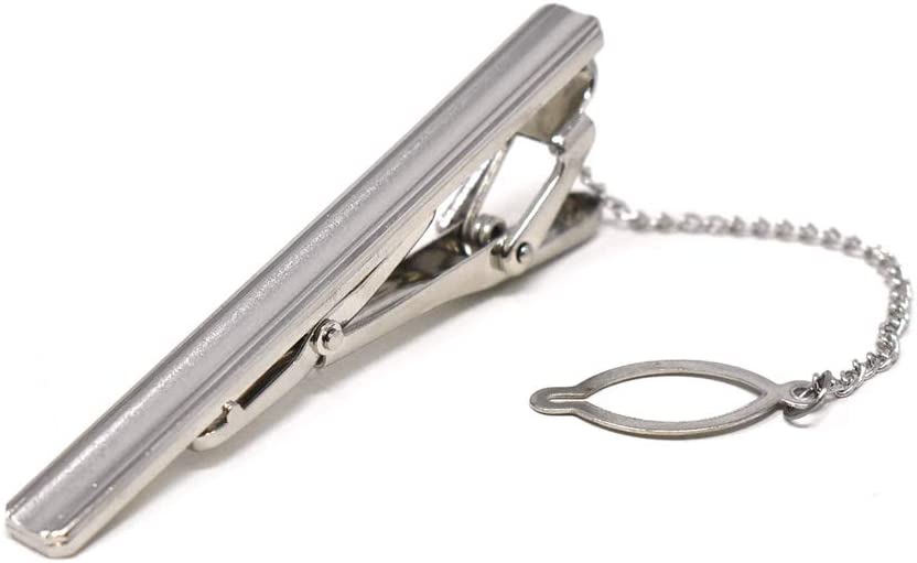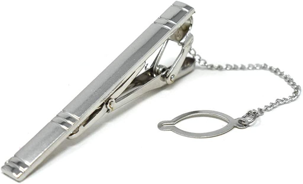 Mens Tie Bar Pinch Clip with Button Chain, 2.1-inch